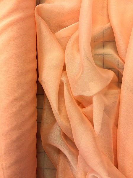Priced per yard. Peach polyester two-toned chiffon. 59/60-inches wide.
