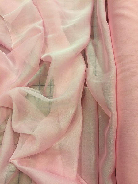 Priced per yard. Pink polyester two-toned chiffon. 59/60-inches wide.