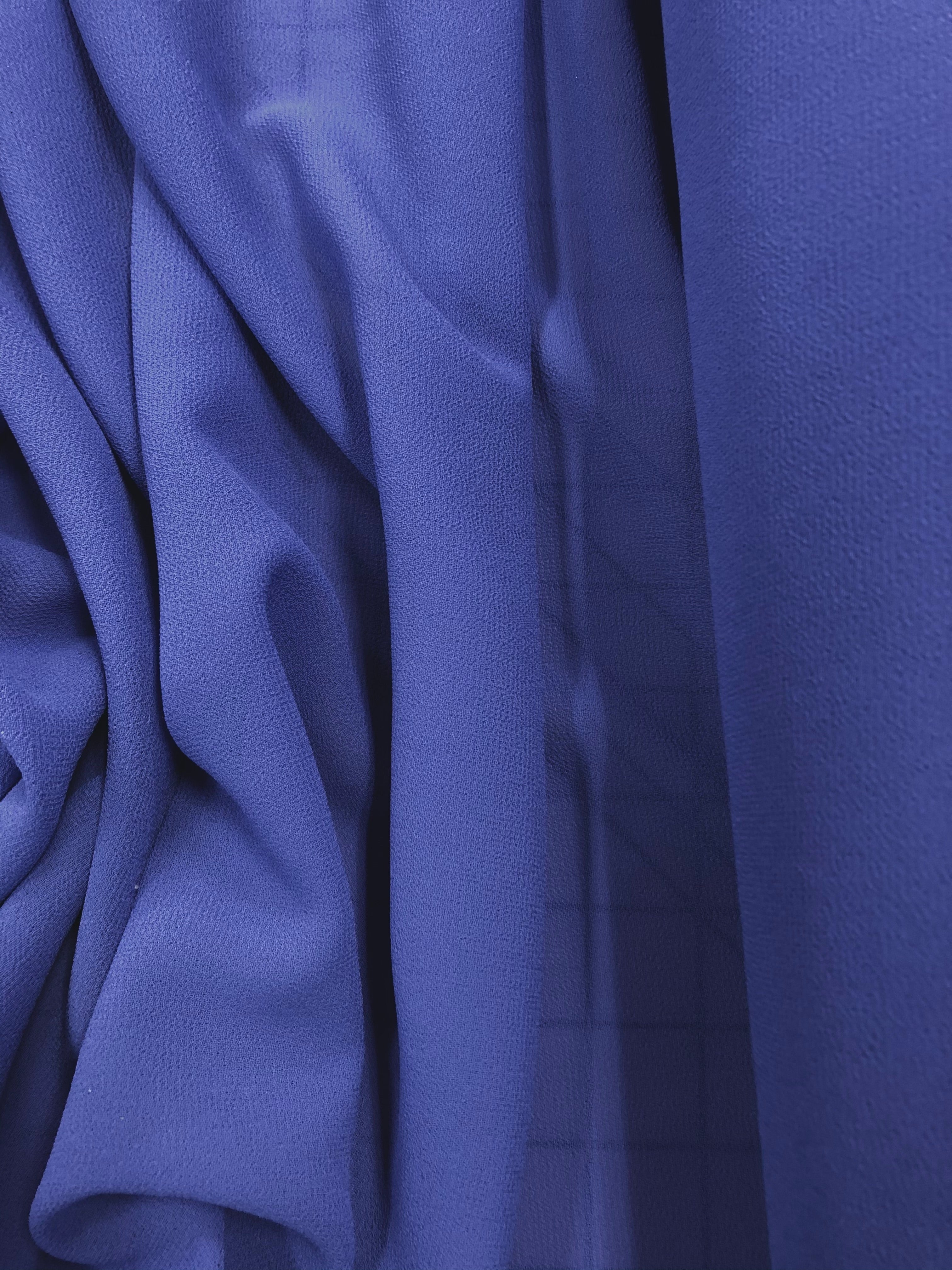 Priced per yard. Periwinkle polyester double georgette. This is true georgette quality - beautiful! Perfect for ballet skirts. Special Purchase - cannot be re-ordered, so be sure to get what you need. 45-inches wide.