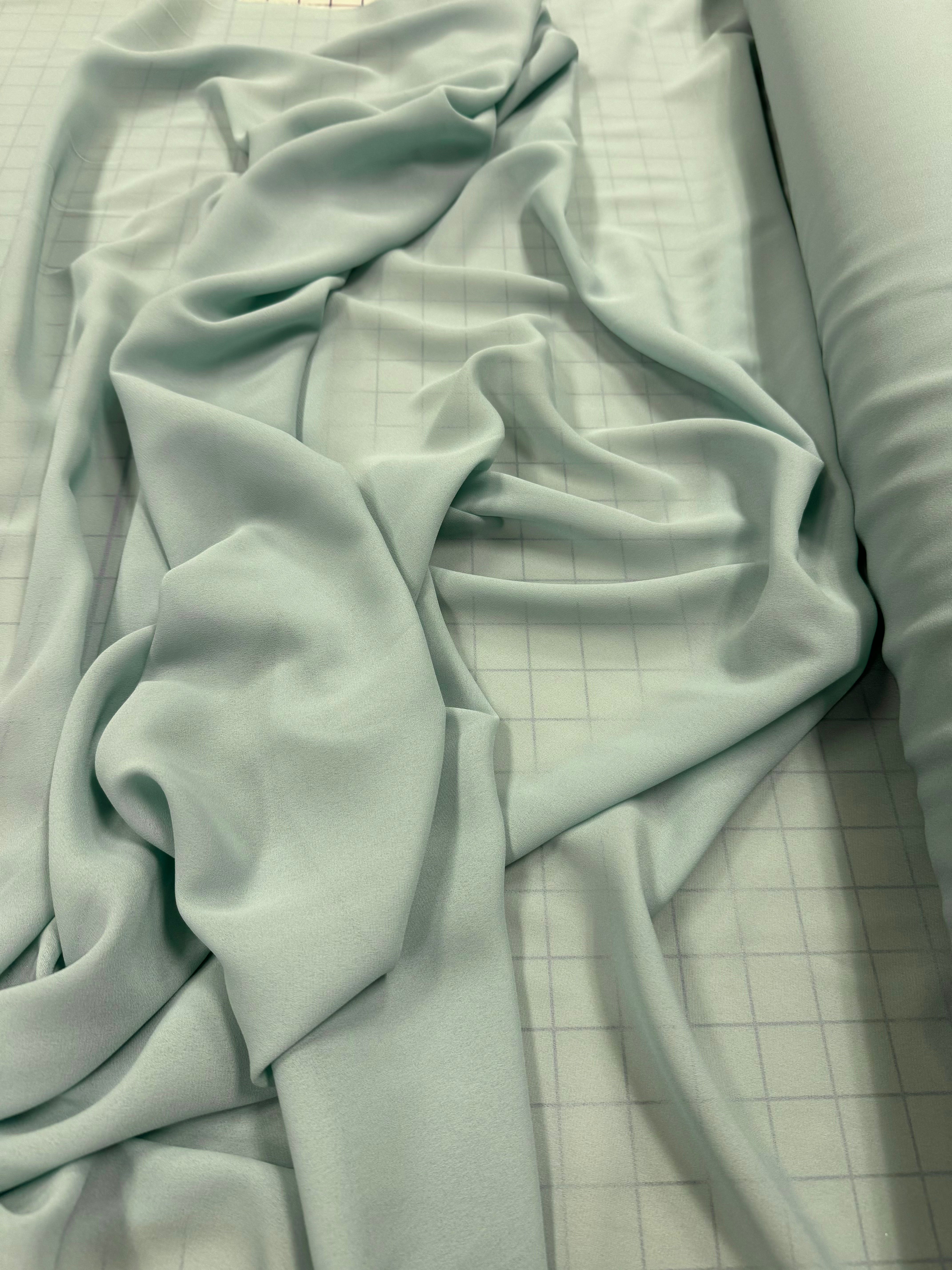 Priced per yard. Sage green polyester double georgette. 45-inches wide.