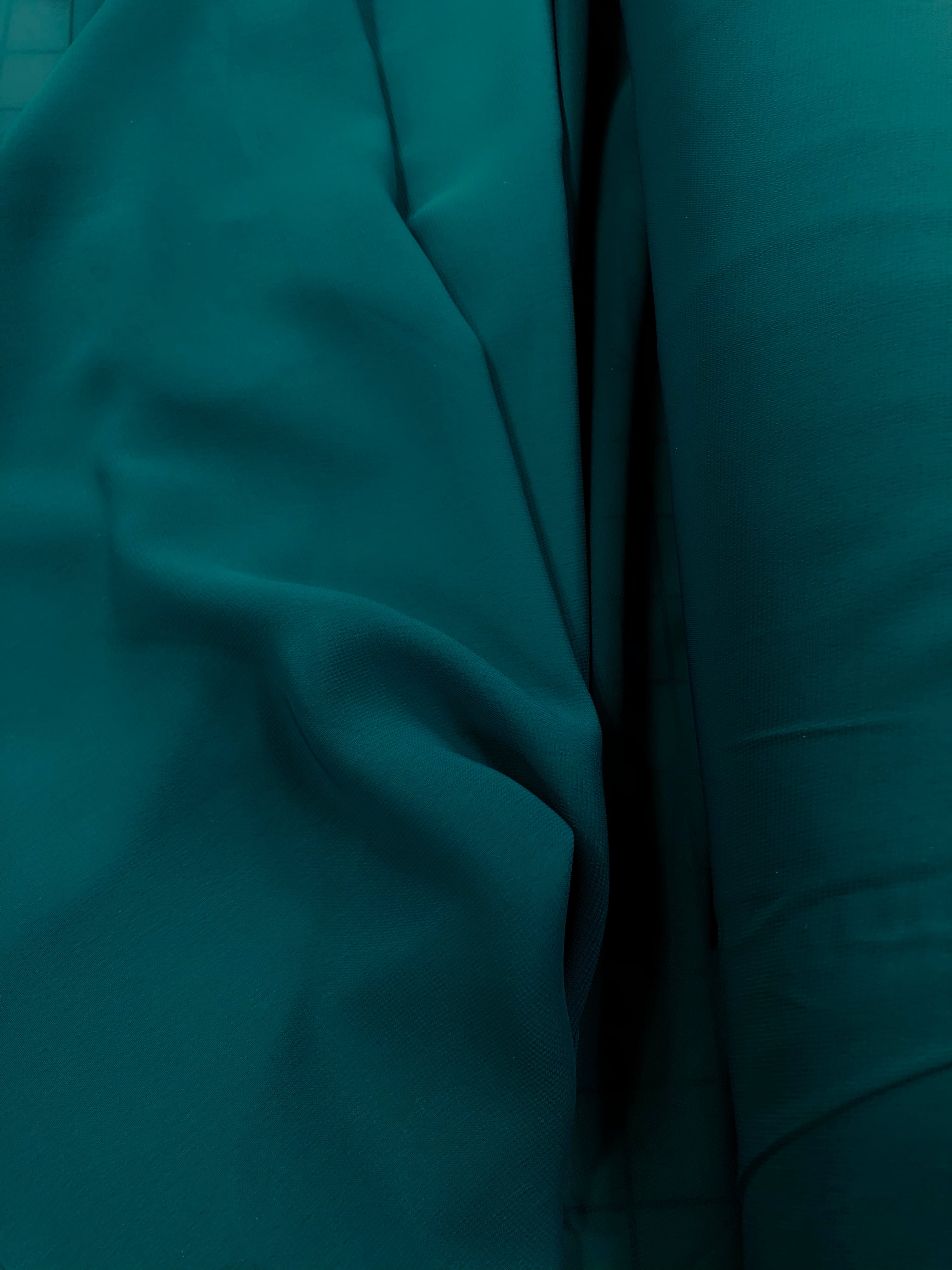 Priced per yard. Teal polyester double georgette. 58-inches wide.