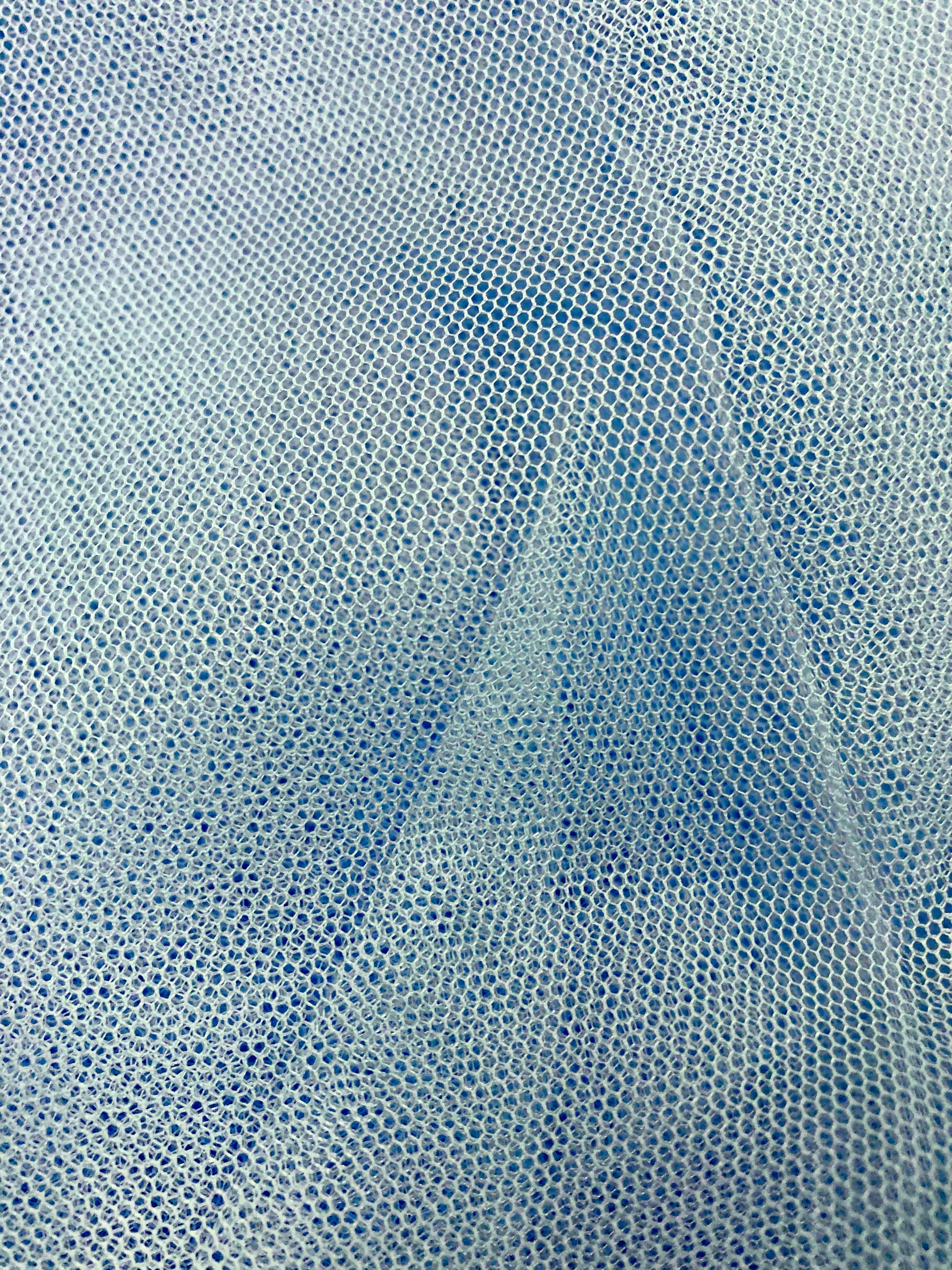 Priced per yard. Light Blue. 100% polyester. This tulle has a little stretch across the width of the fabric.