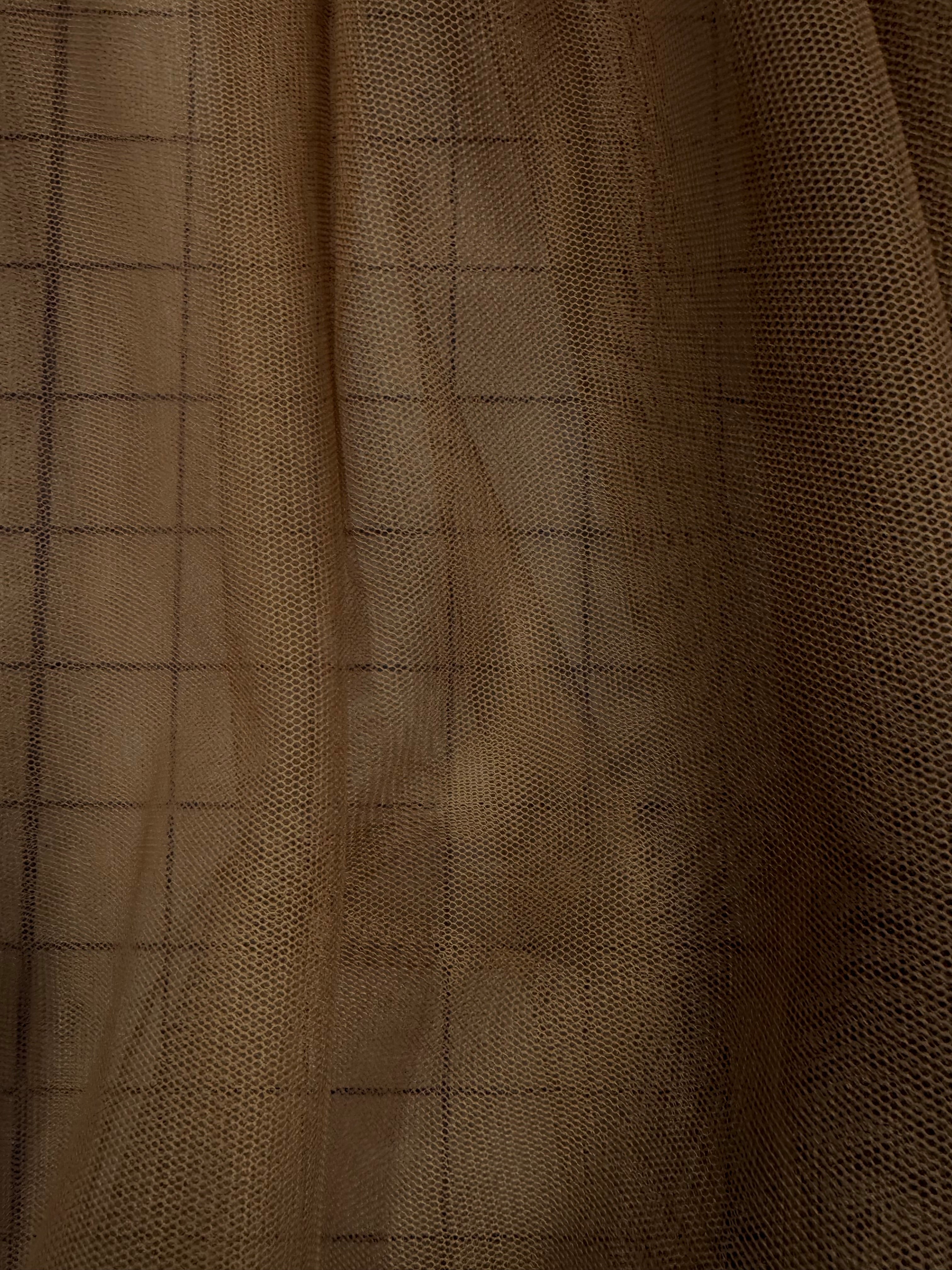 Priced per yard. Choolate brown #9. 100% polyester. This tulle has a little stretch across the width of the fabric.
