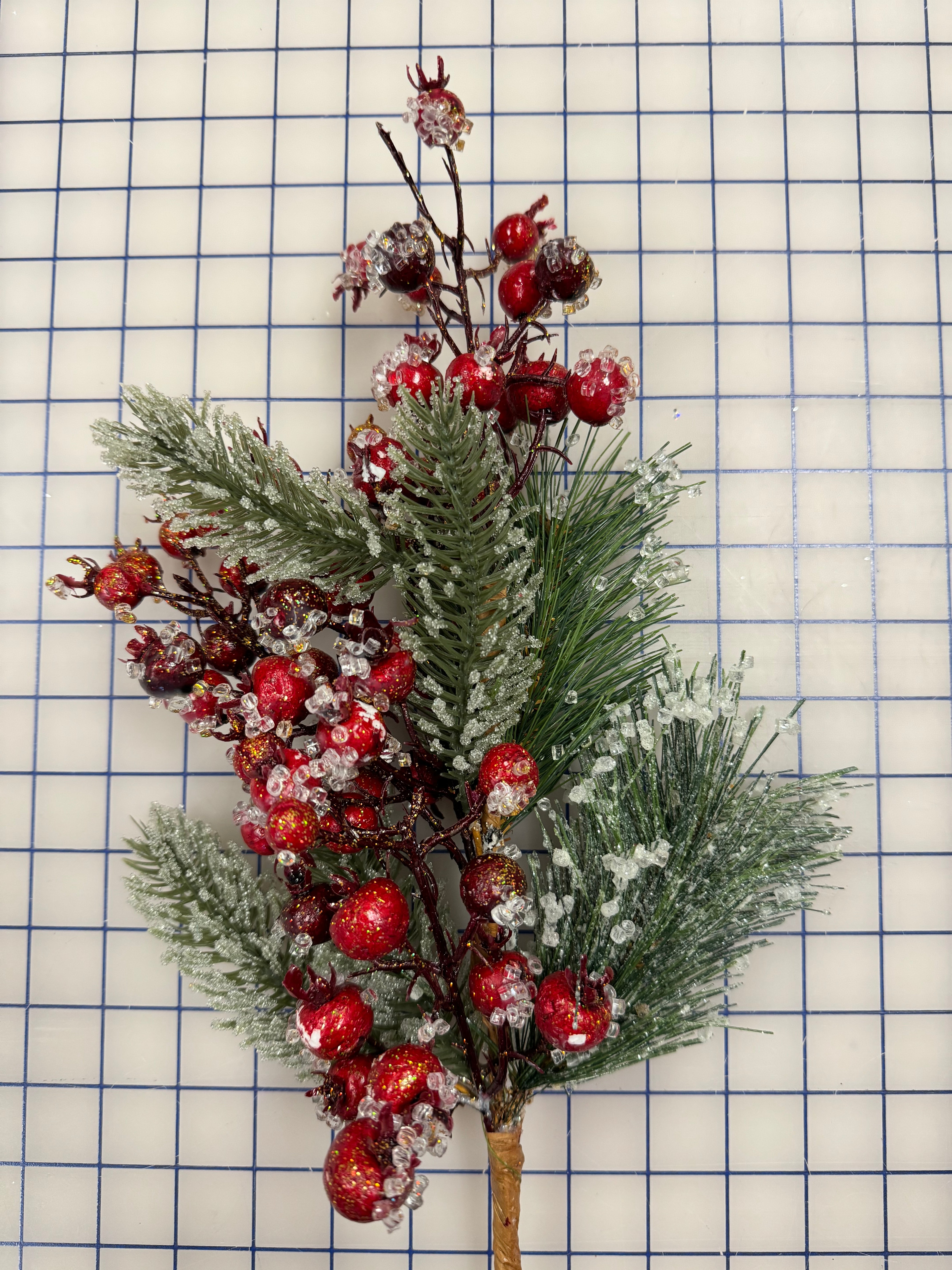 Priced per piece. Beutiful pine branch prop with cranberries and sparkly "frost".