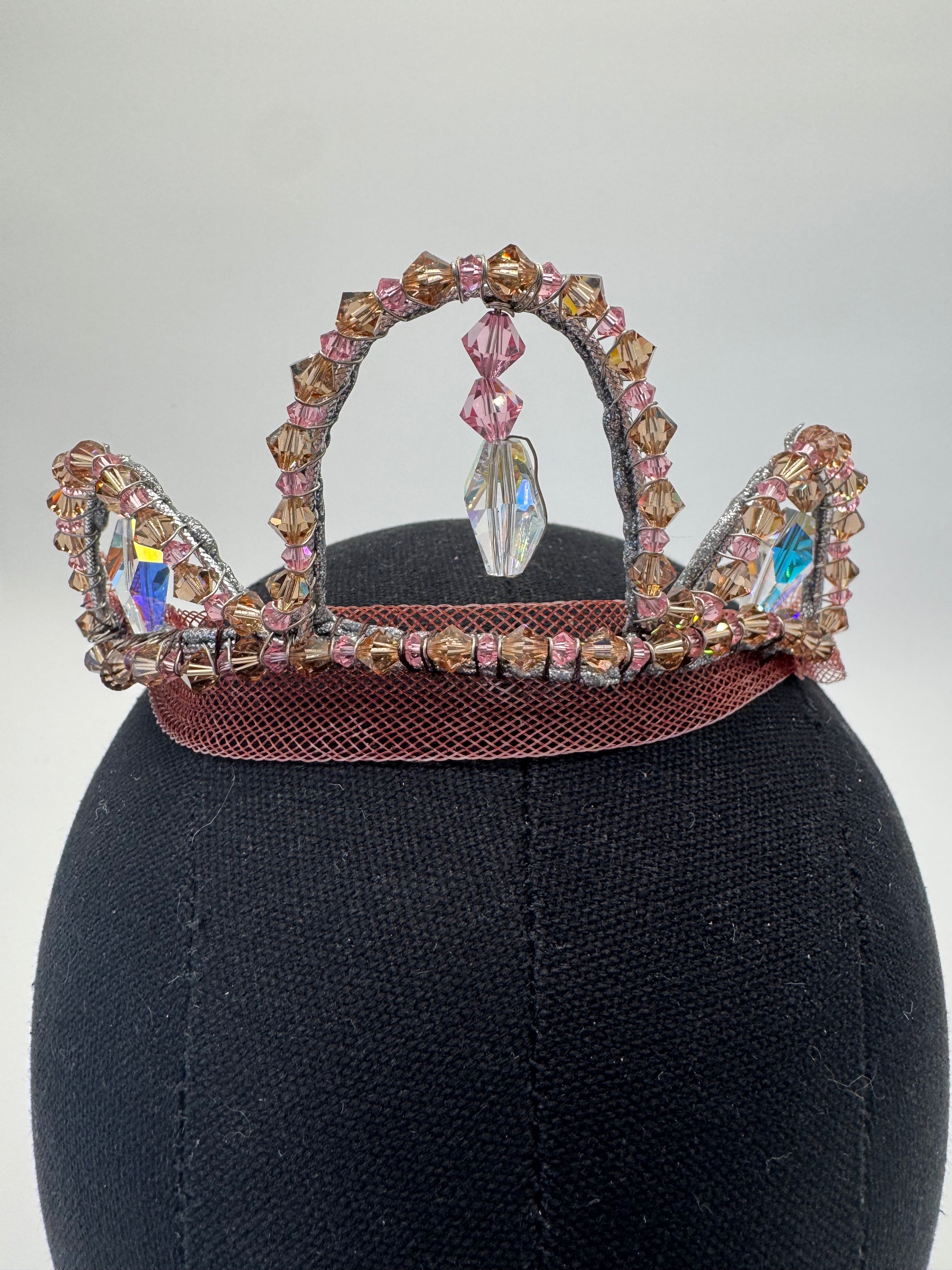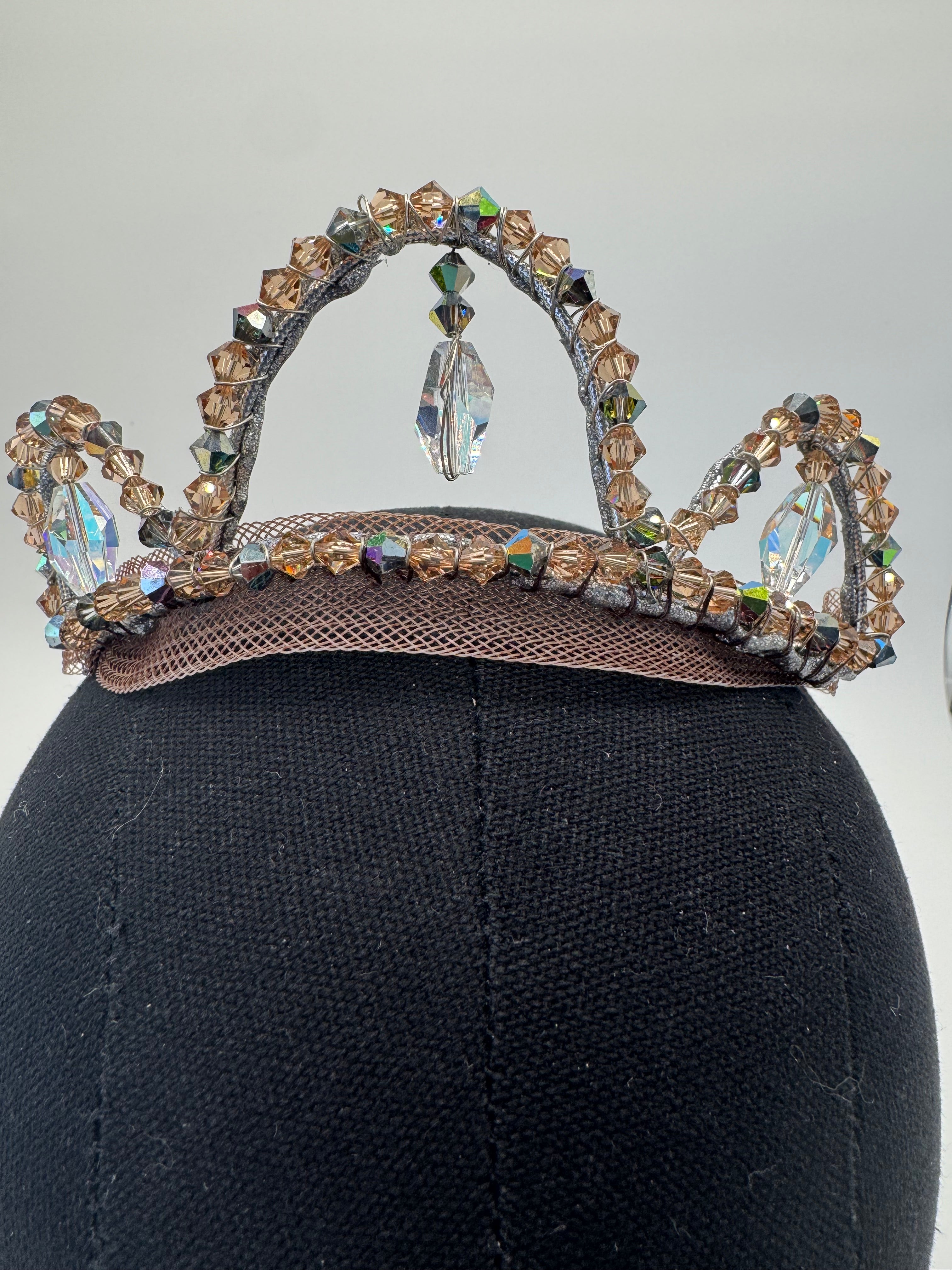 Priced per piece. Two tiaras - one has light rose and light colorado topaz and one has vitrail medium and light colorado topaz Swarovski beads. Both have large AB crystal Swarovski center beads. Both have horsehair to make it easy to bobby pin on.