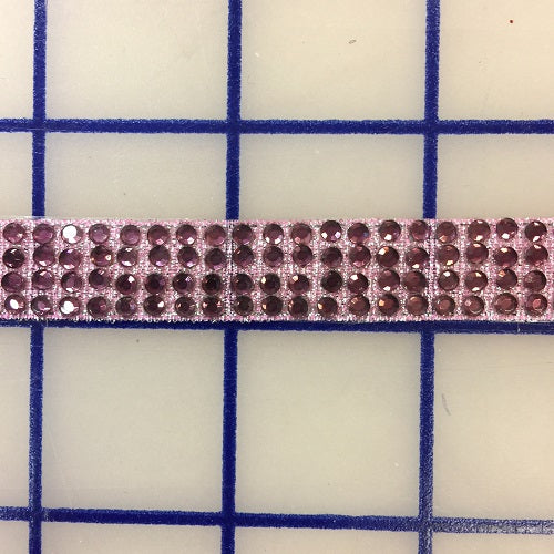 Priced per yard. Amethyst 4-row hot fix rhinestone banding.