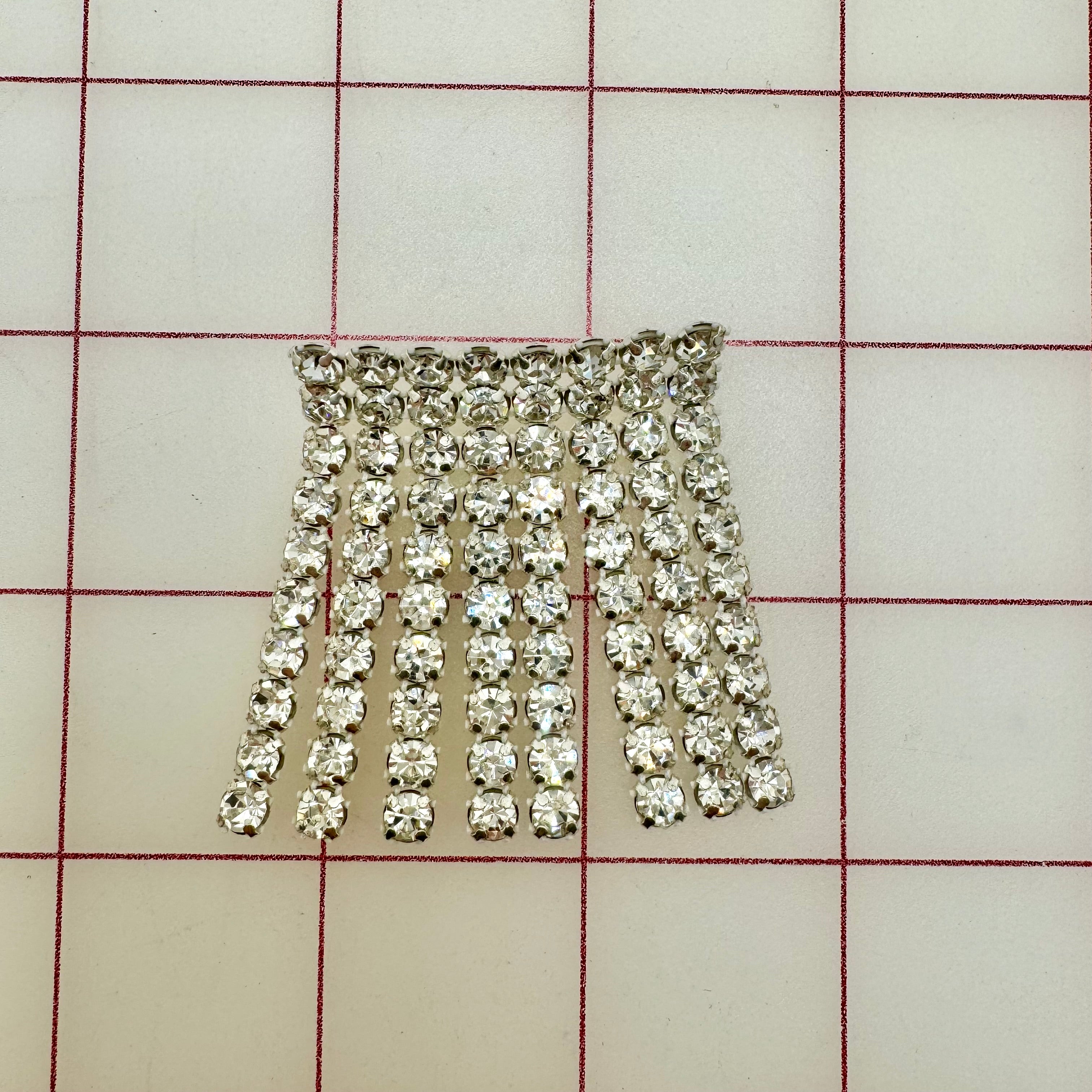 Priced per piece. 2-inch long, Czech crystal 8-row rhinestone banding trim.