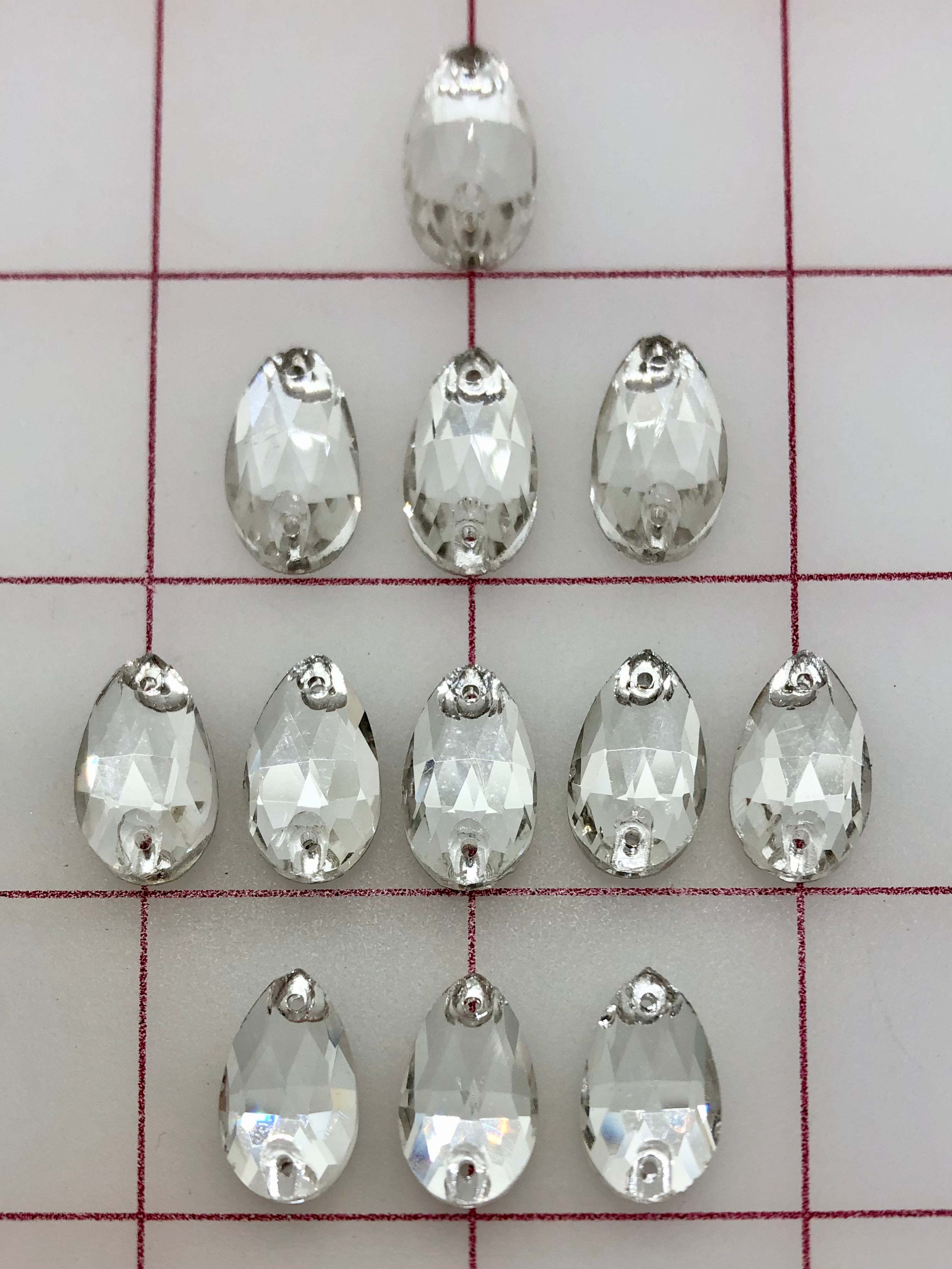 Rhinestones - 10x18mm Czech "Bright-Cut" Crystal Pear-Shape Sew-On
