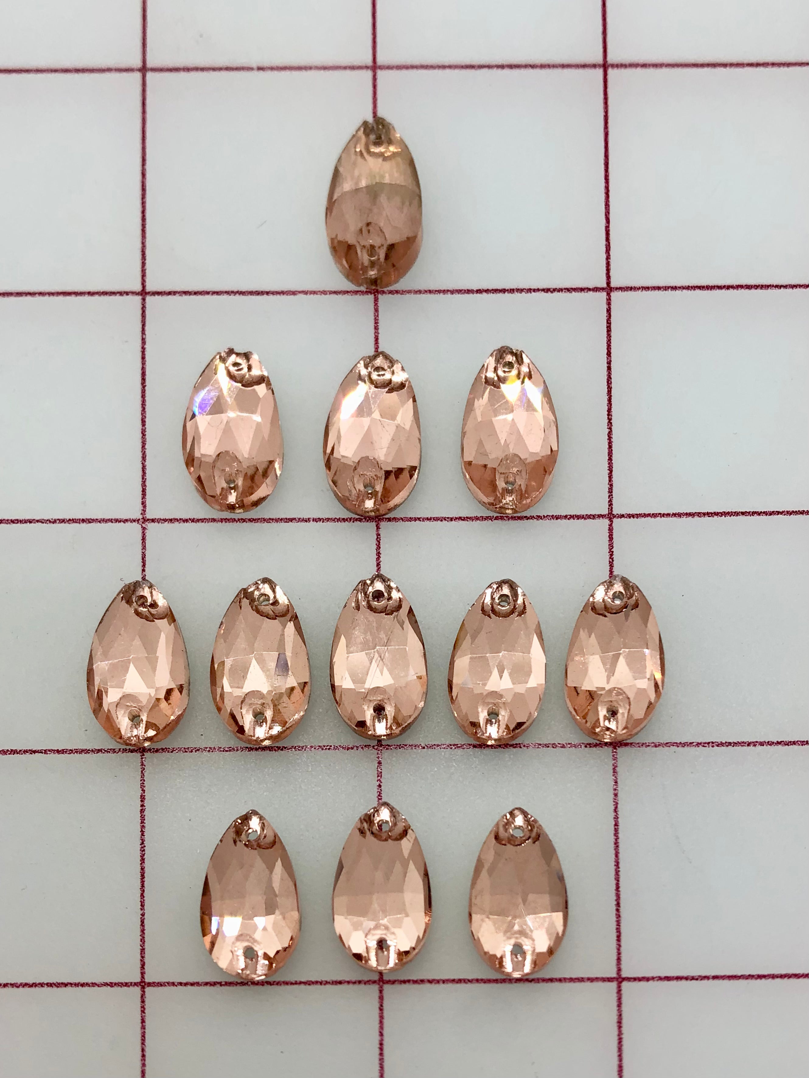 Rhinestones - 10x18mm Czech "Bright-Cut" Light Peach Pear-Shape Sew-On