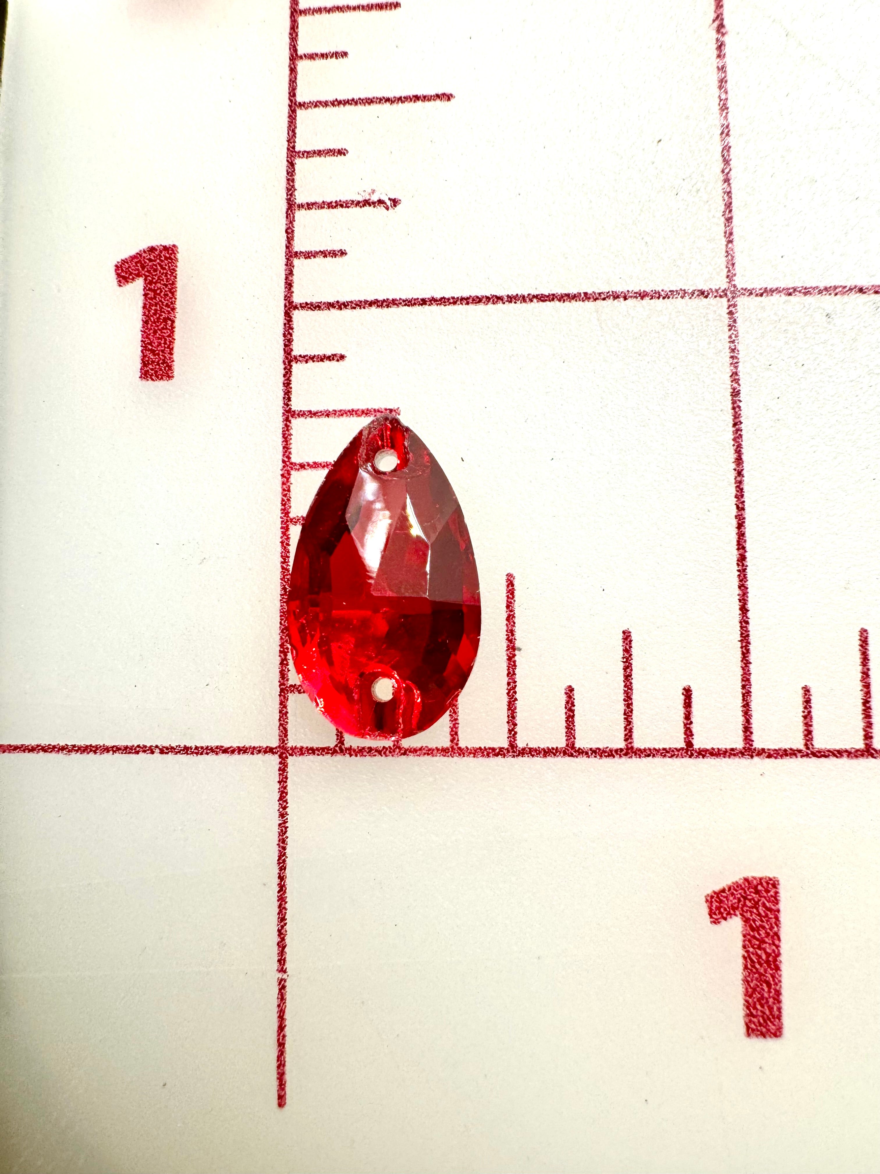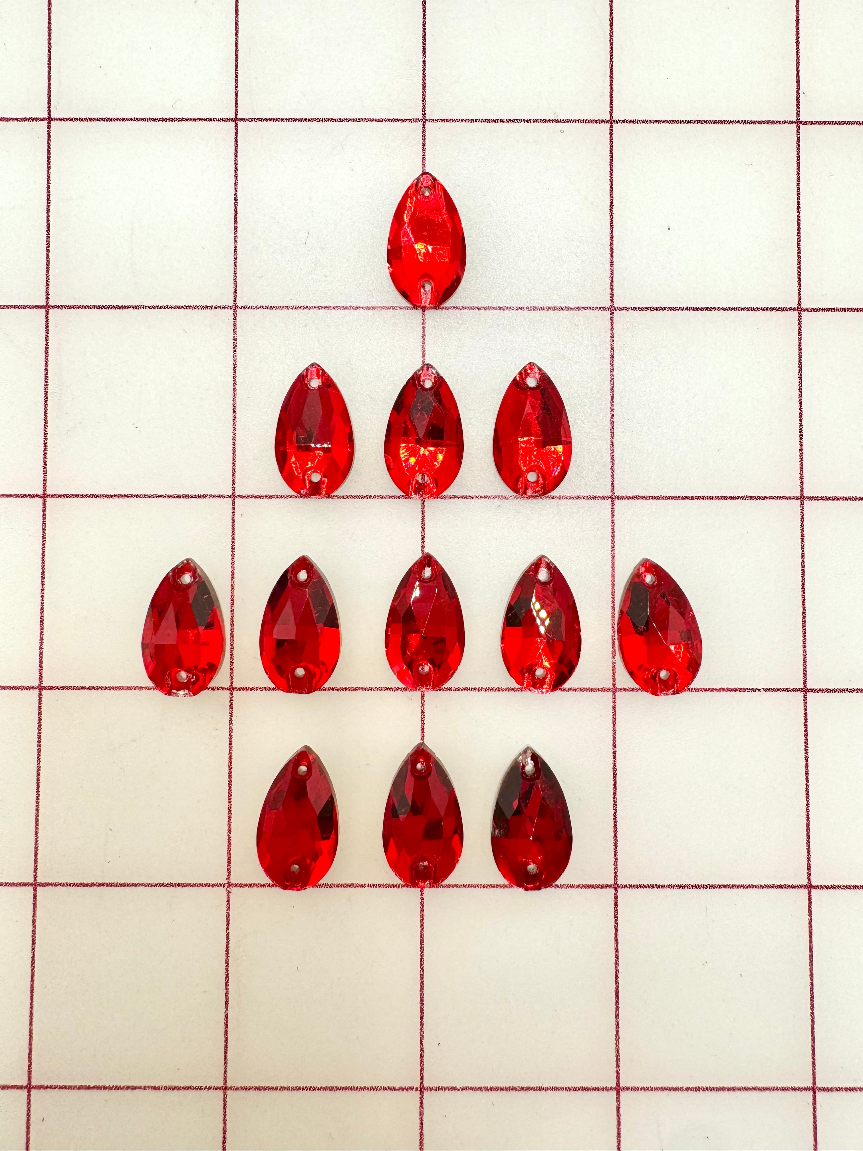 Priced per piece. 10x18mm flat back pear-shaped sew-on rhinestones. 10% discount per 3-pack. 20% discount per 12-pack (one dozen).