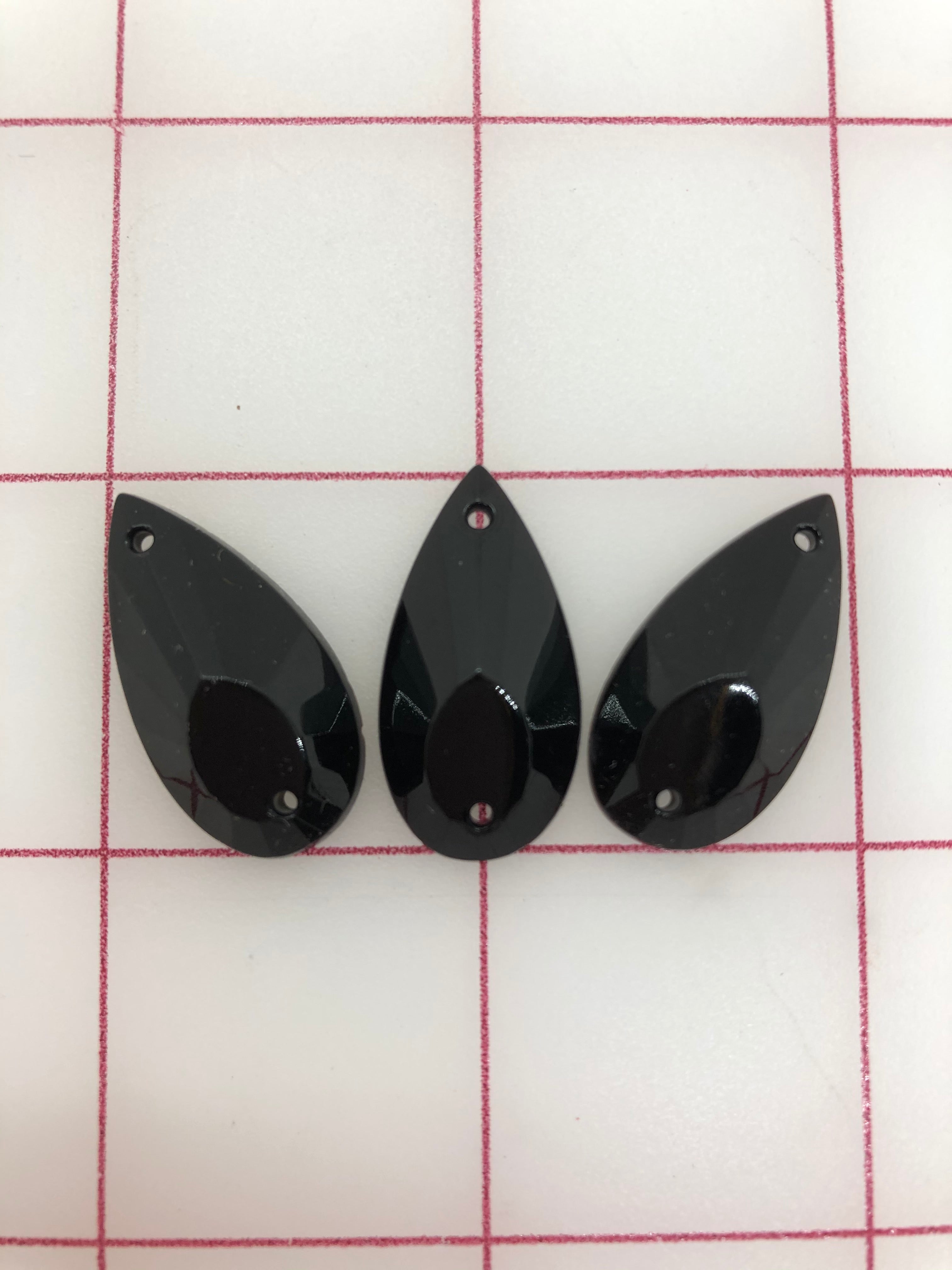 Priced per 3-pack. Lightweight, large, 27x14mm Pear-Shape Flat-Back Sew-On Czech Rhinestones. Perfect for use on tutu plates, bodices, headpieces, tiaras, and many other costumes.