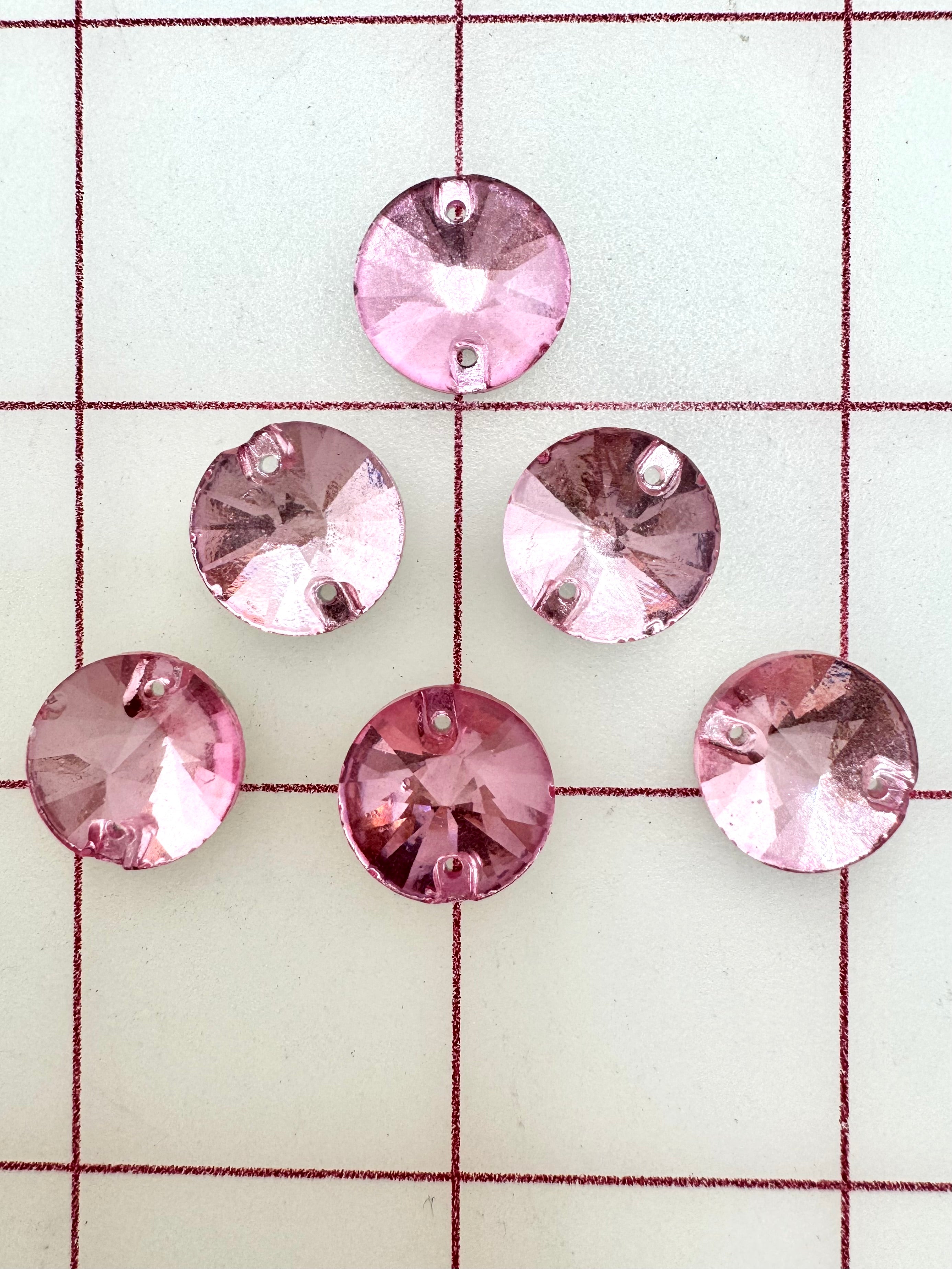 Rhinestones - 14mm Czech "Bright-Cut" Light Pink Rivoli (Round) Sew-On 6PK