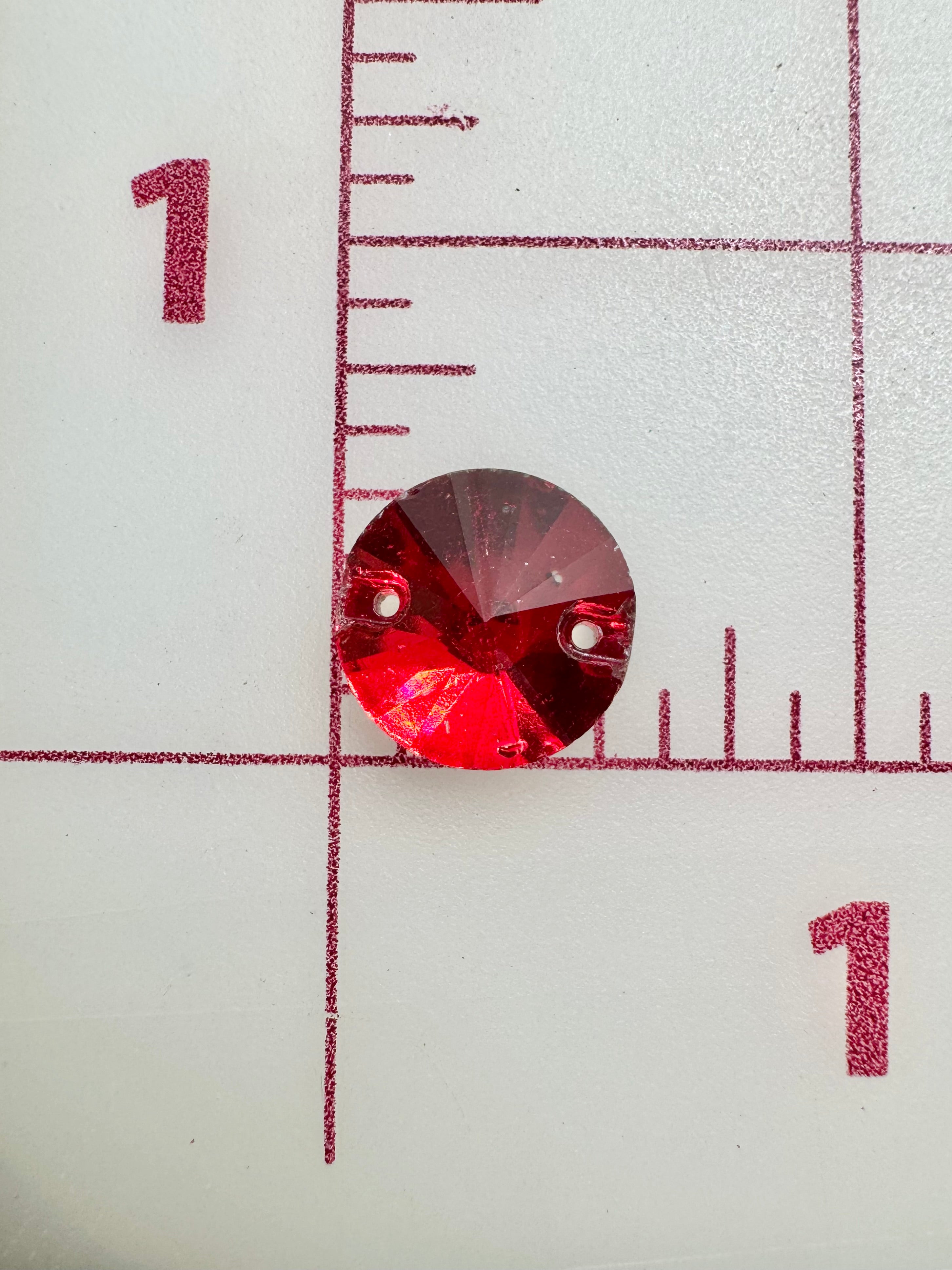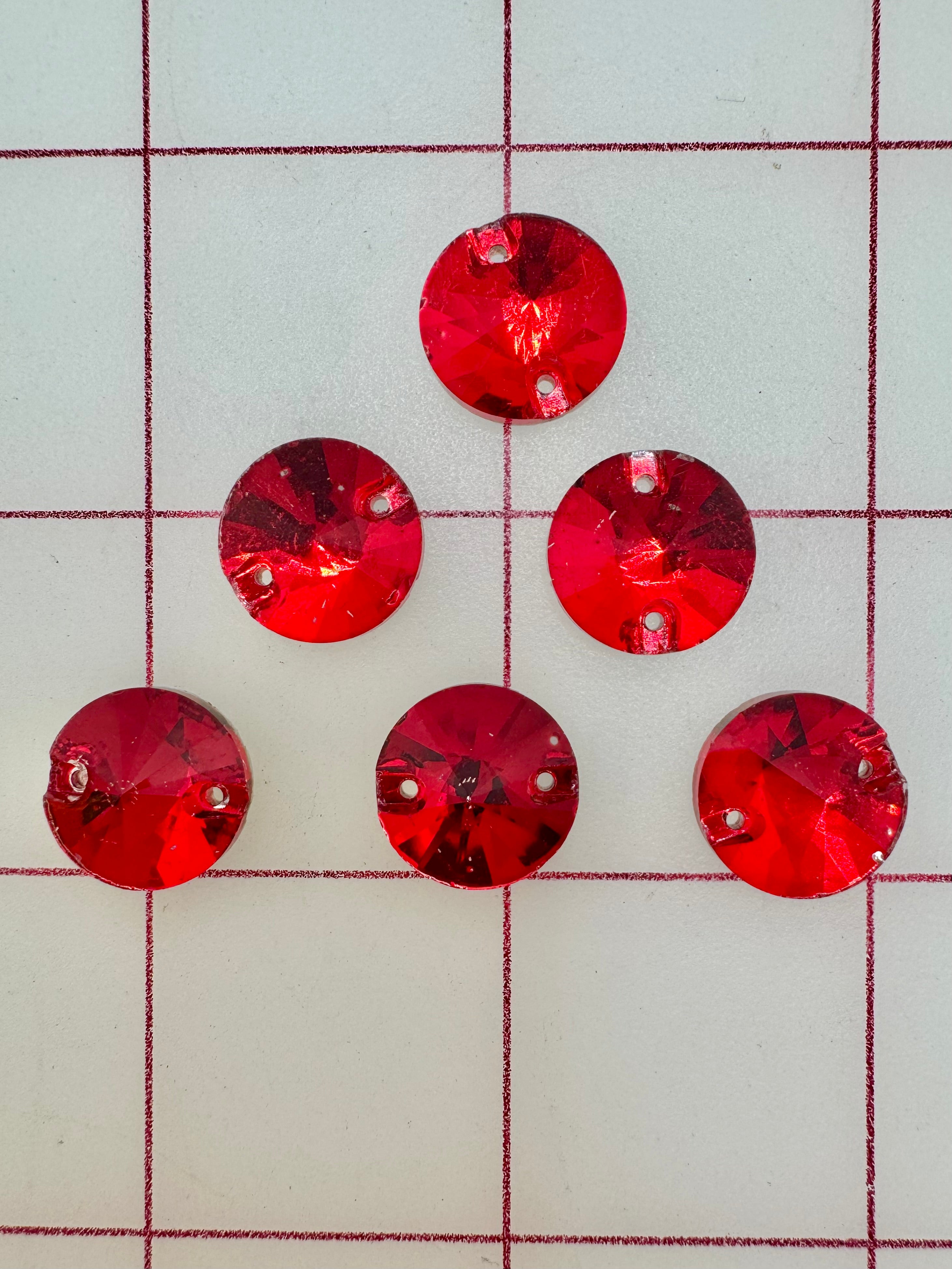 Rhinestones - 14mm Czech "Bright-Cut" Siam Rivoli (Round) Sew-On 6PK