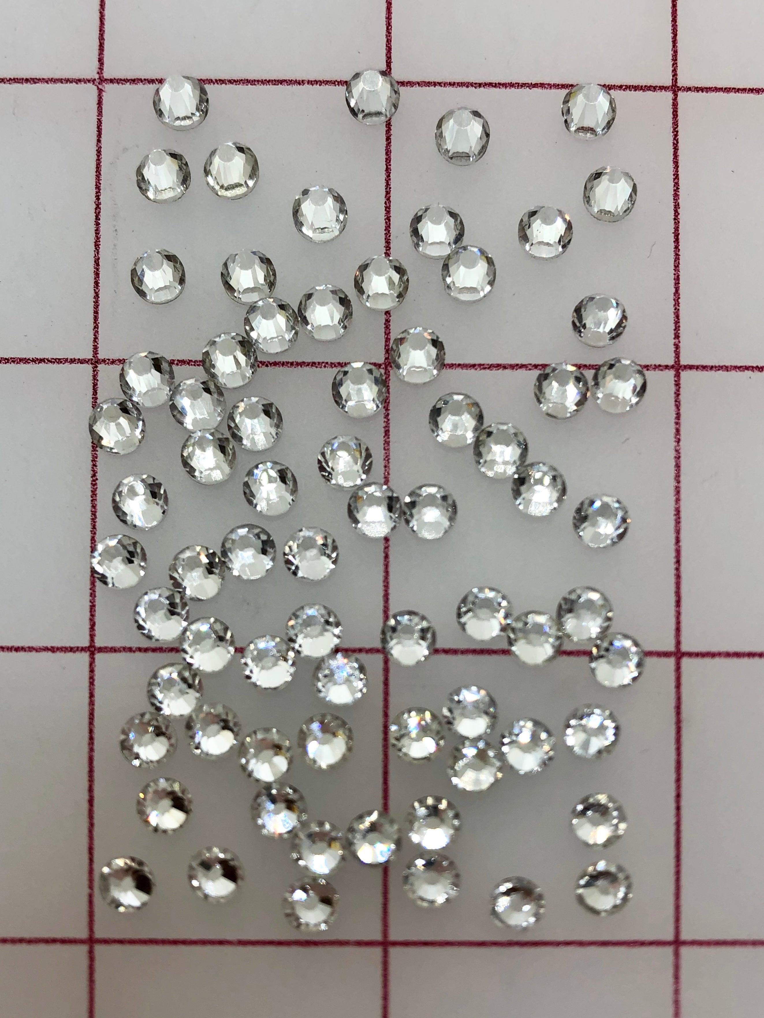 Priced per 1/2 Gross (72 pieces)-pack. 20ss Czech "Bright-Cut" rhinestones. Crystal with golden foil backs.