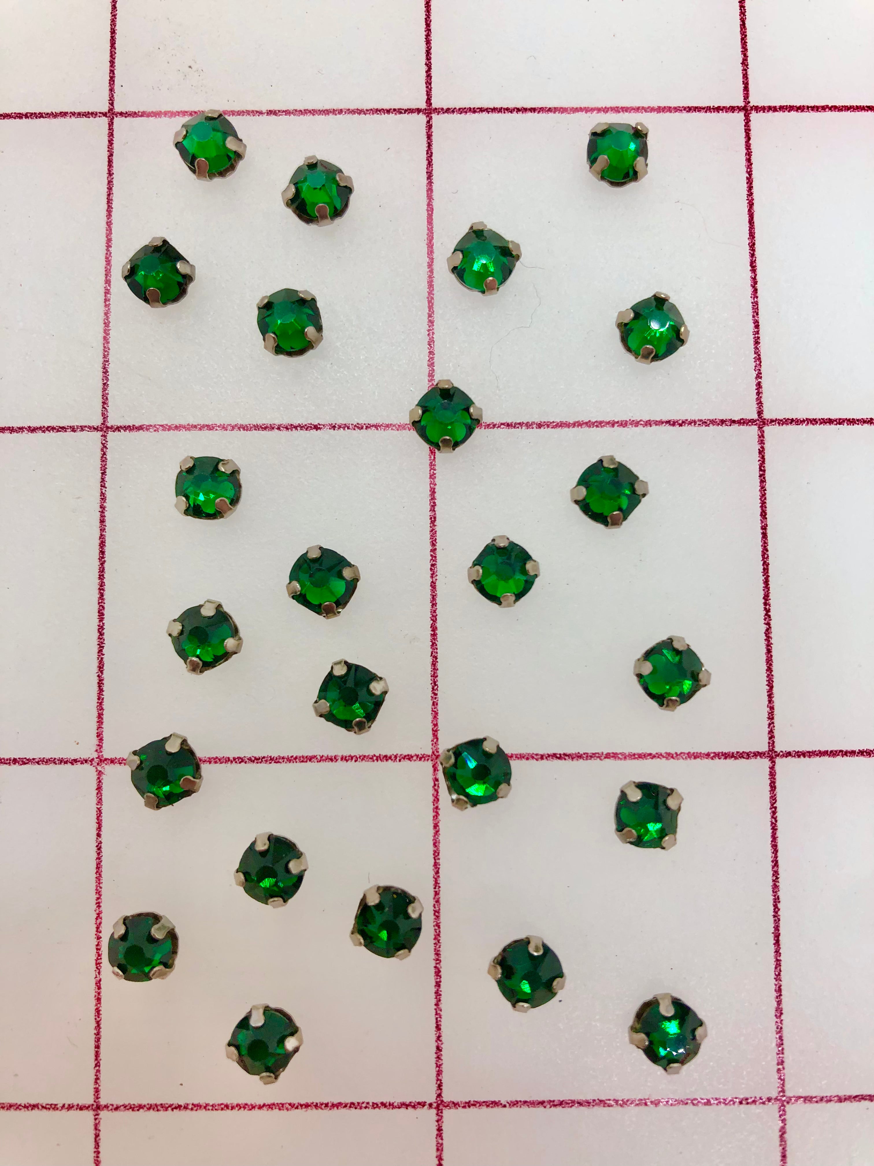 Priced per 24-pack. 20ss Rose Montees. Emerald. Perfect for tiaras and other headpieces. 20% discount per one gross pack (six 24-piece packs)