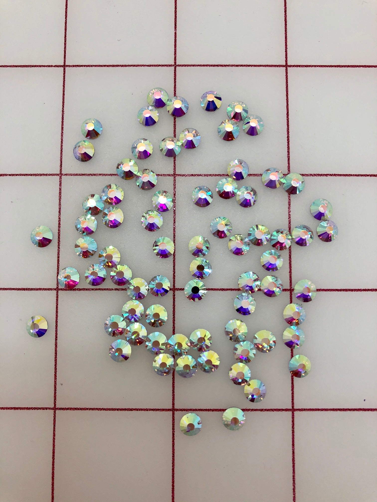 Priced per half gross (72-pieces). Hot Fix 20ss premium machine-cut rhinestones. AB means "Aurora Borealis." AB stones have a rainbow coating on them, allowing them to reflect subtle colors.