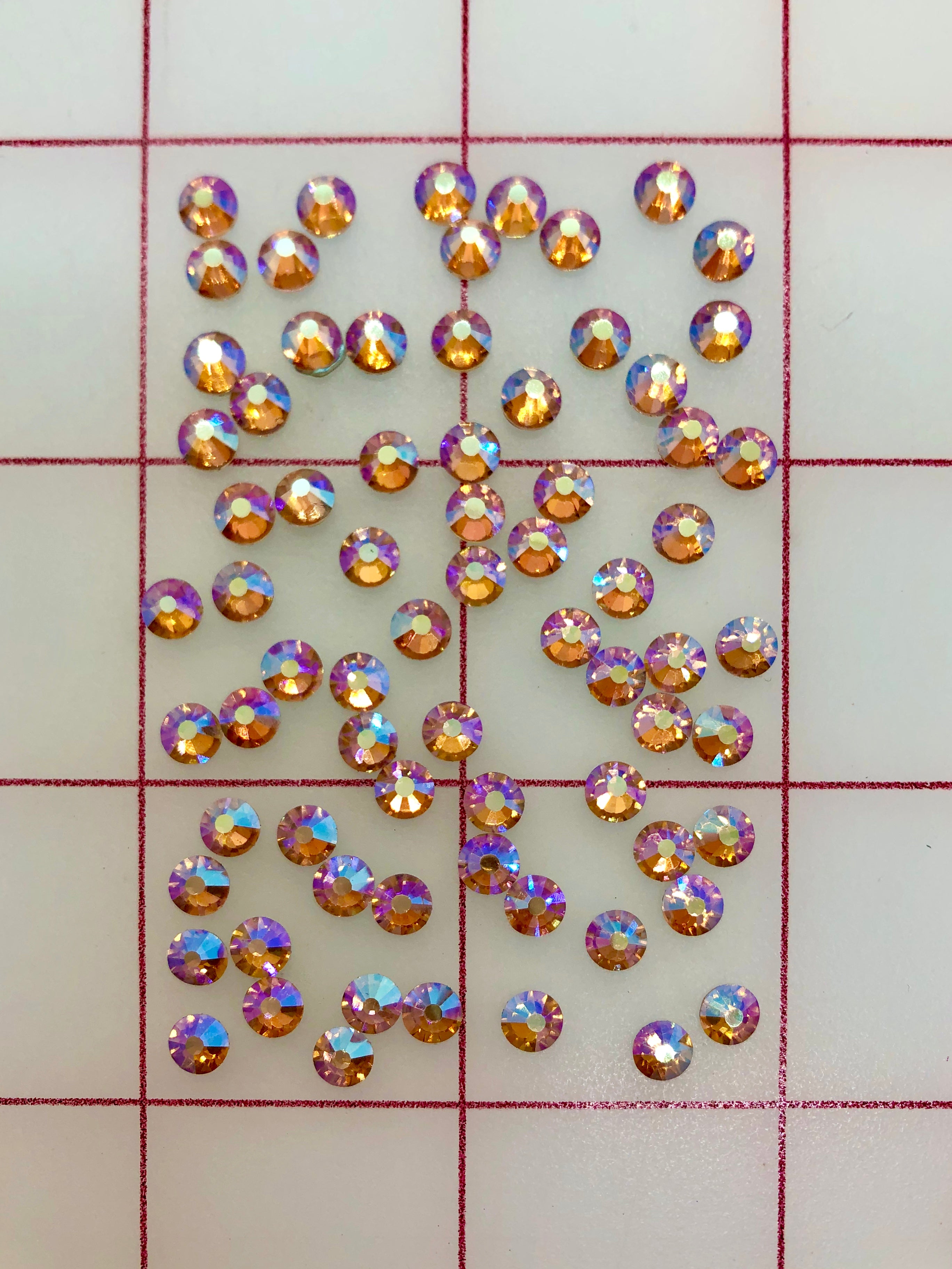Priced per half gross (72-pieces). Hot Fix 20ss premium machine-cut rhinestones. AB means "Aurora Borealis." AB stones have a rainbow coating on them, allowing them to reflect subtle colors.