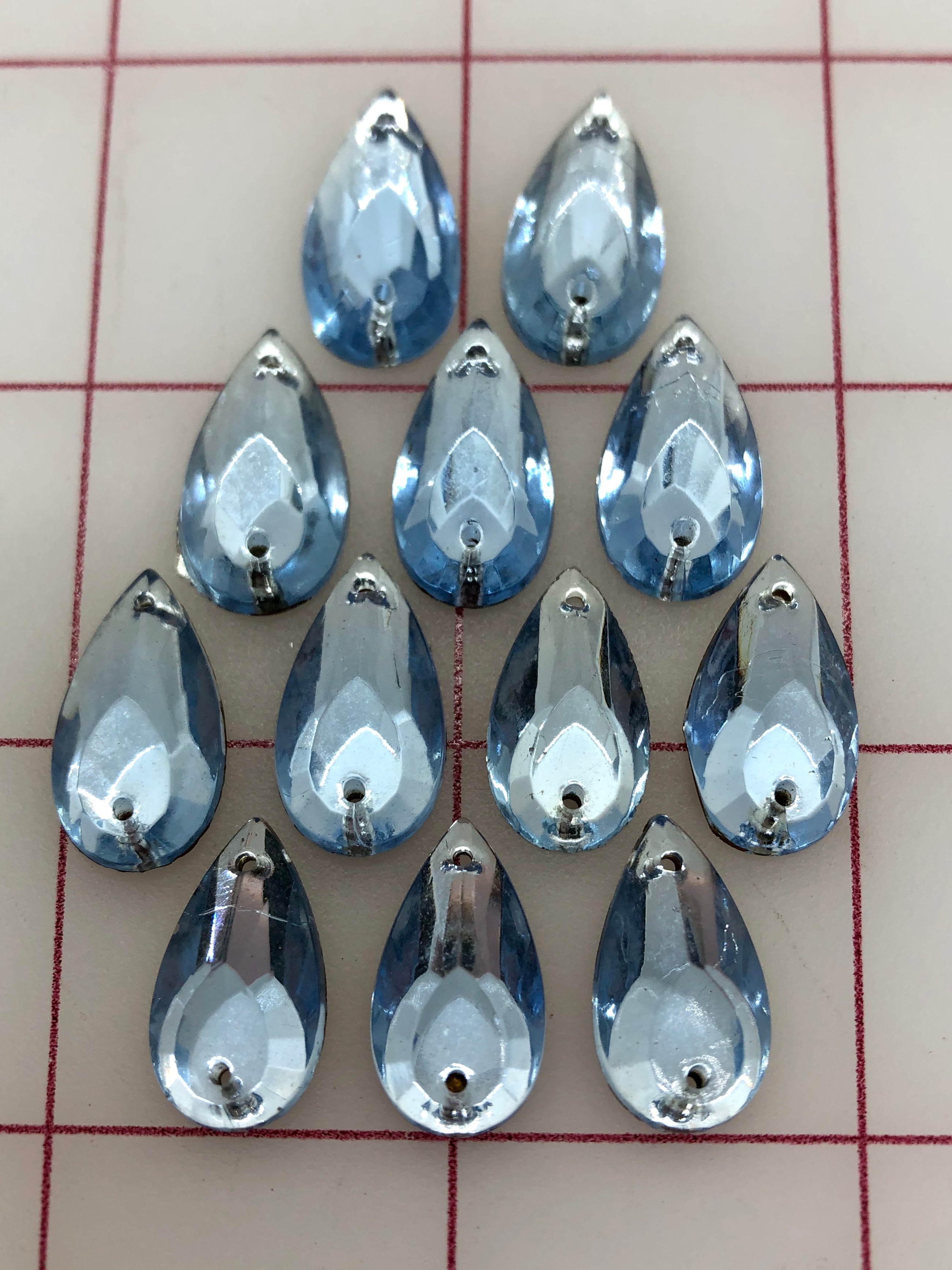 Priced per dozen. Vintage, lightweight, 20x11mm Pear-Shape Flat-Back Sew-On Czech Rhinestones. Cannot be re-ordered.