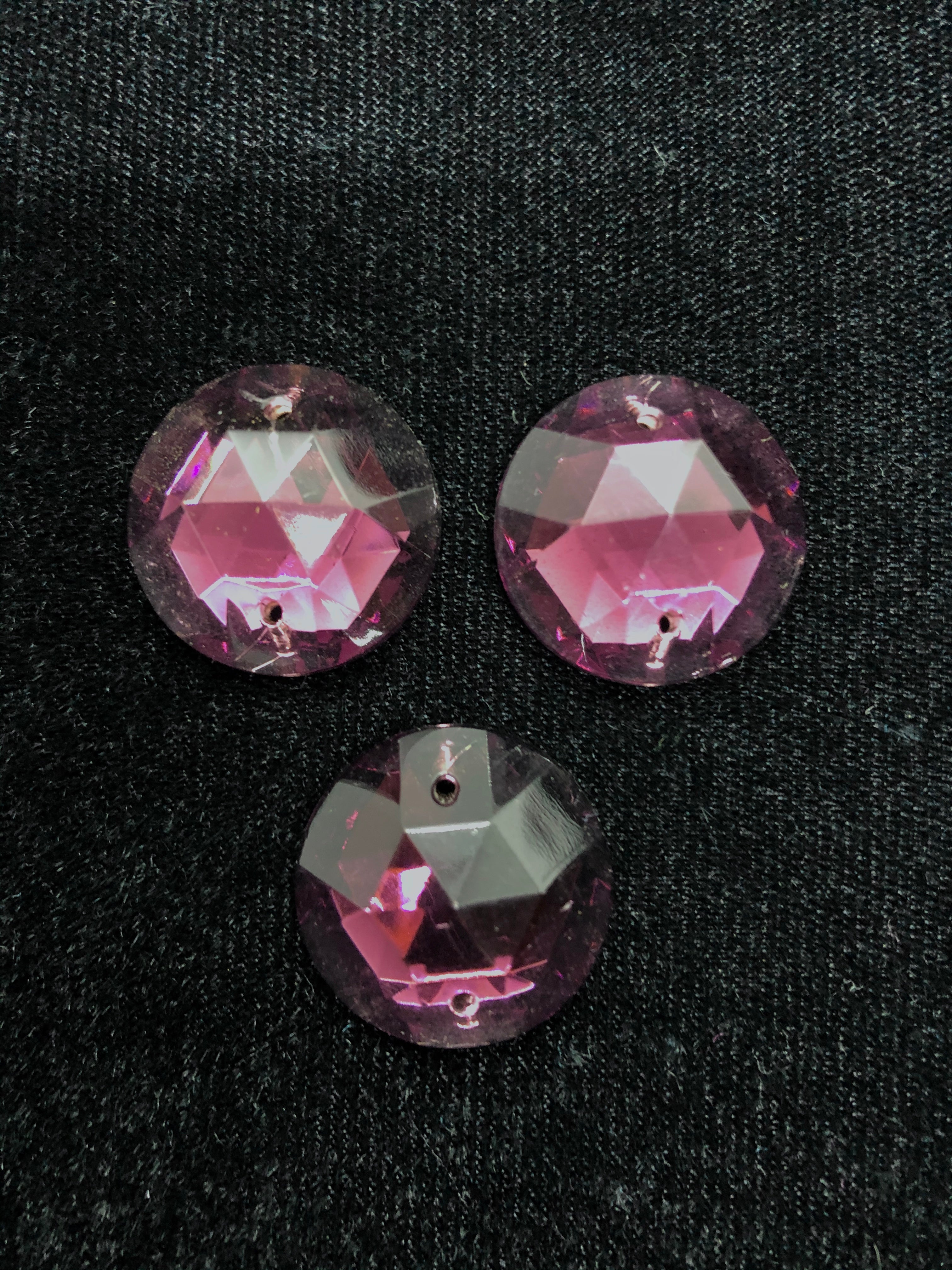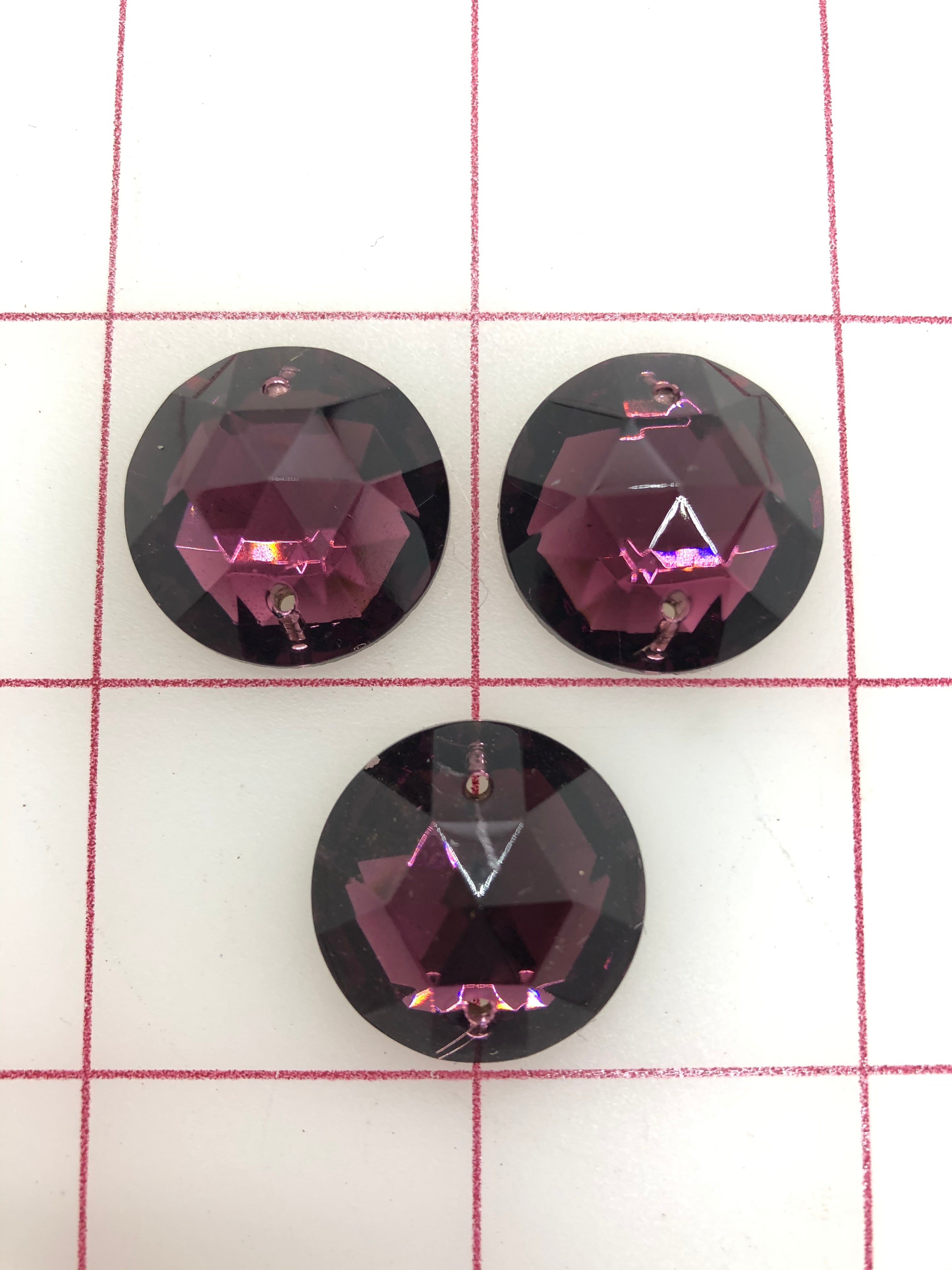 Rhinestones - 22mm Czech Amethyst Round Sew-On 3PK