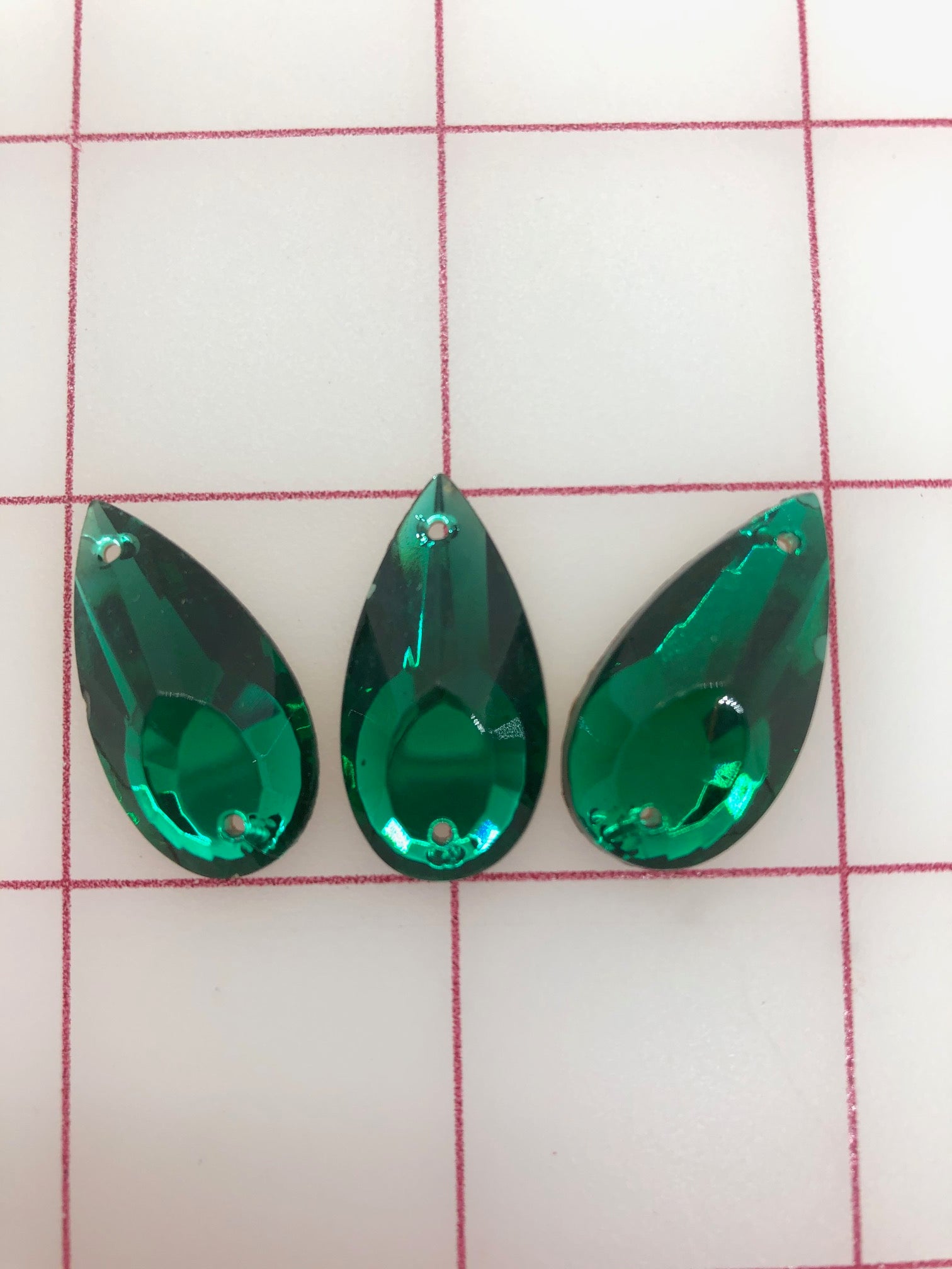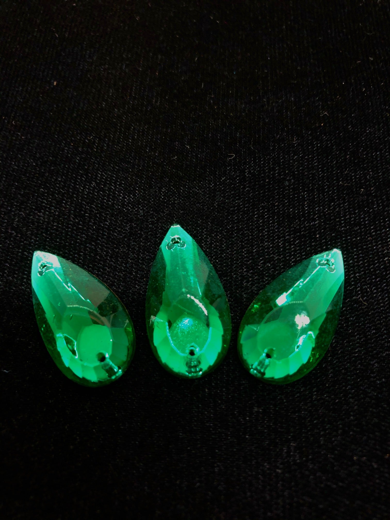Rhinestones - 27X14mm Czech Emerald Pear-Shape Sew-On 3PK