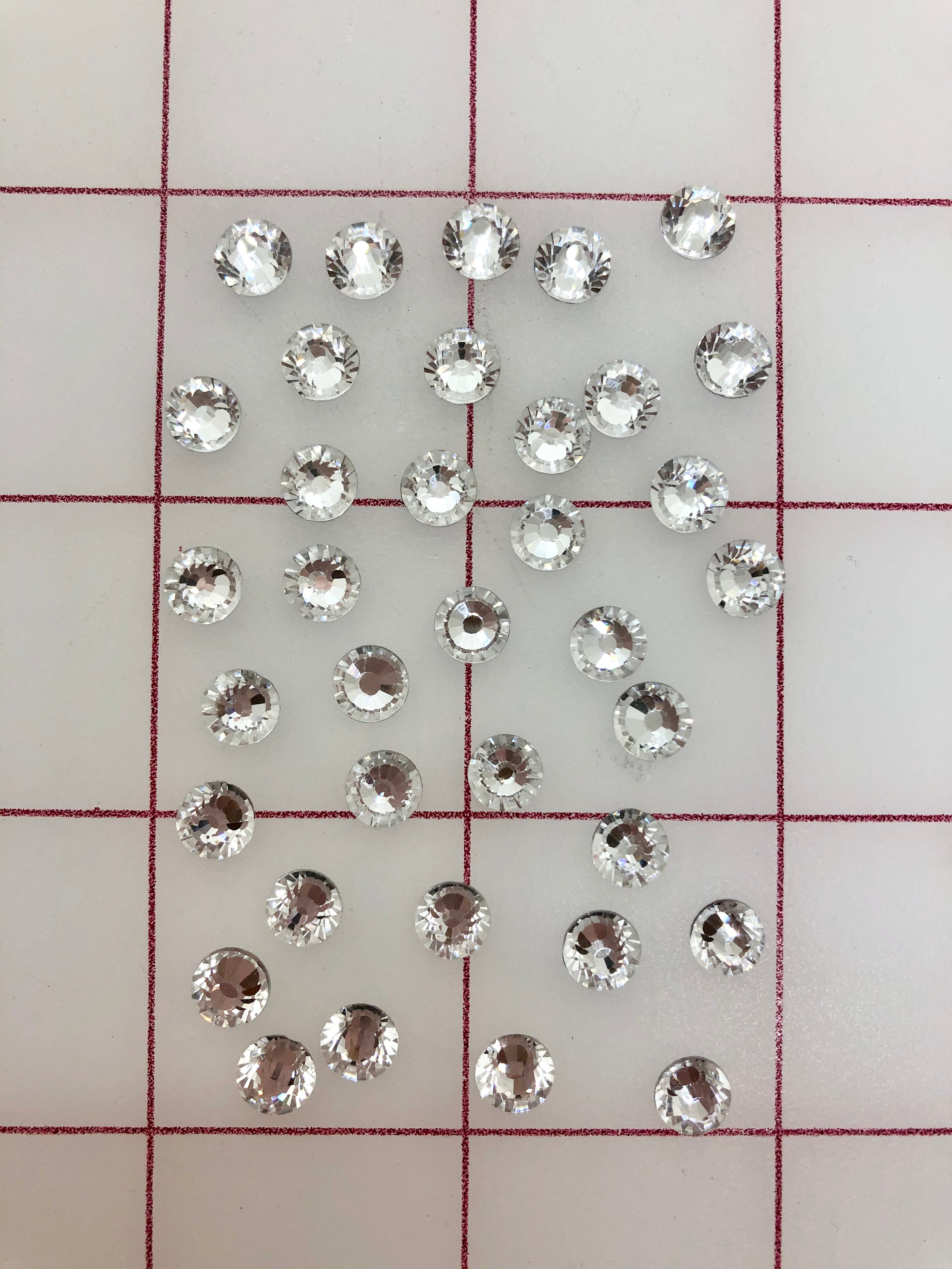 Priced per 36-pack. 30ss Czech "Bright-Cut" rhinestones, with golden-foil backing. Discount for One Gross-packs(15%).
