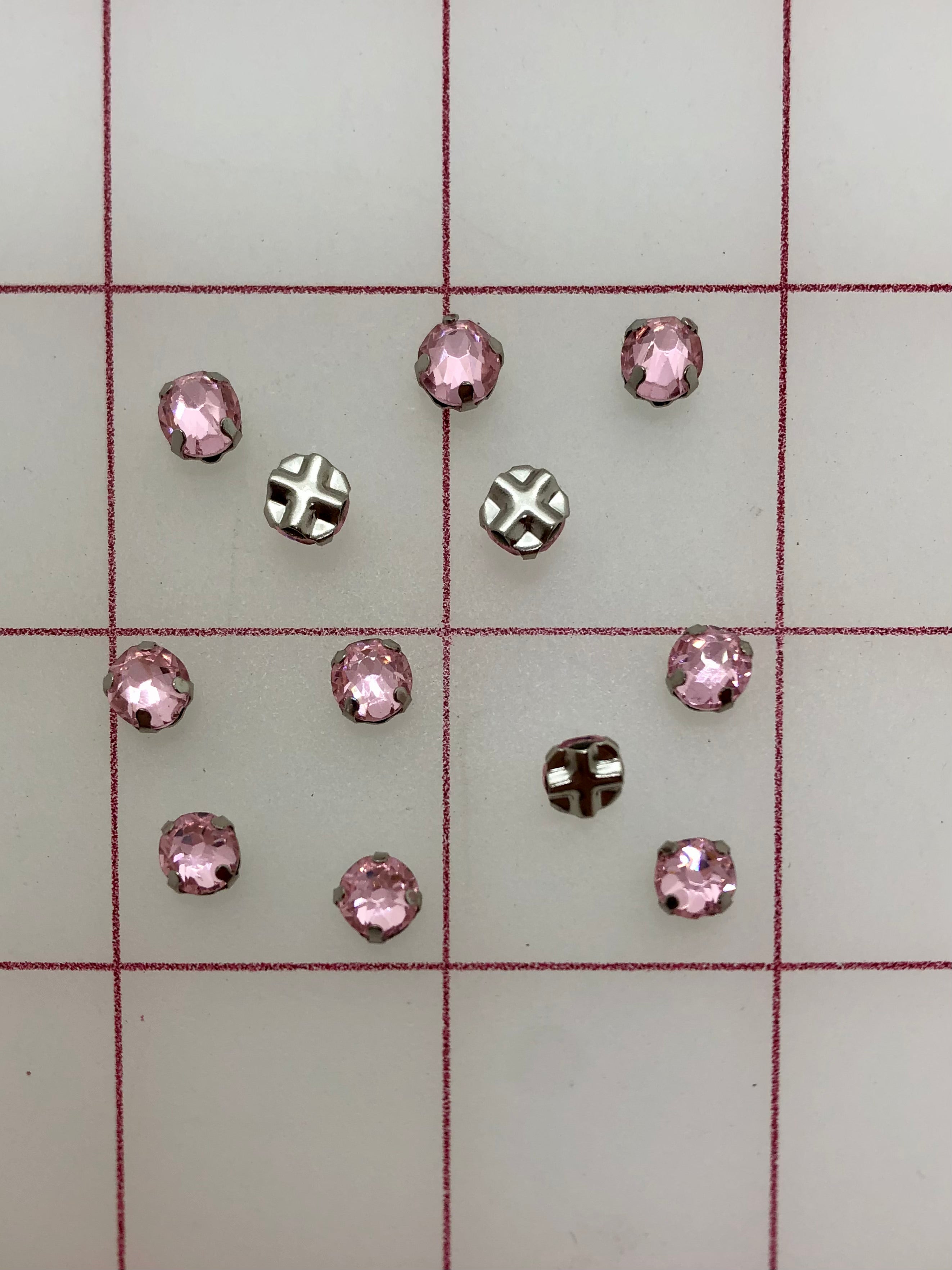 Priced per 12-pack. 30ss Rose Montees. Light Pink. Perfect for tiaras and other headpieces. 10% discount per half gross pack (six 12-piece packs). 20% discount per one gross pack (twelve 12-piece packs).