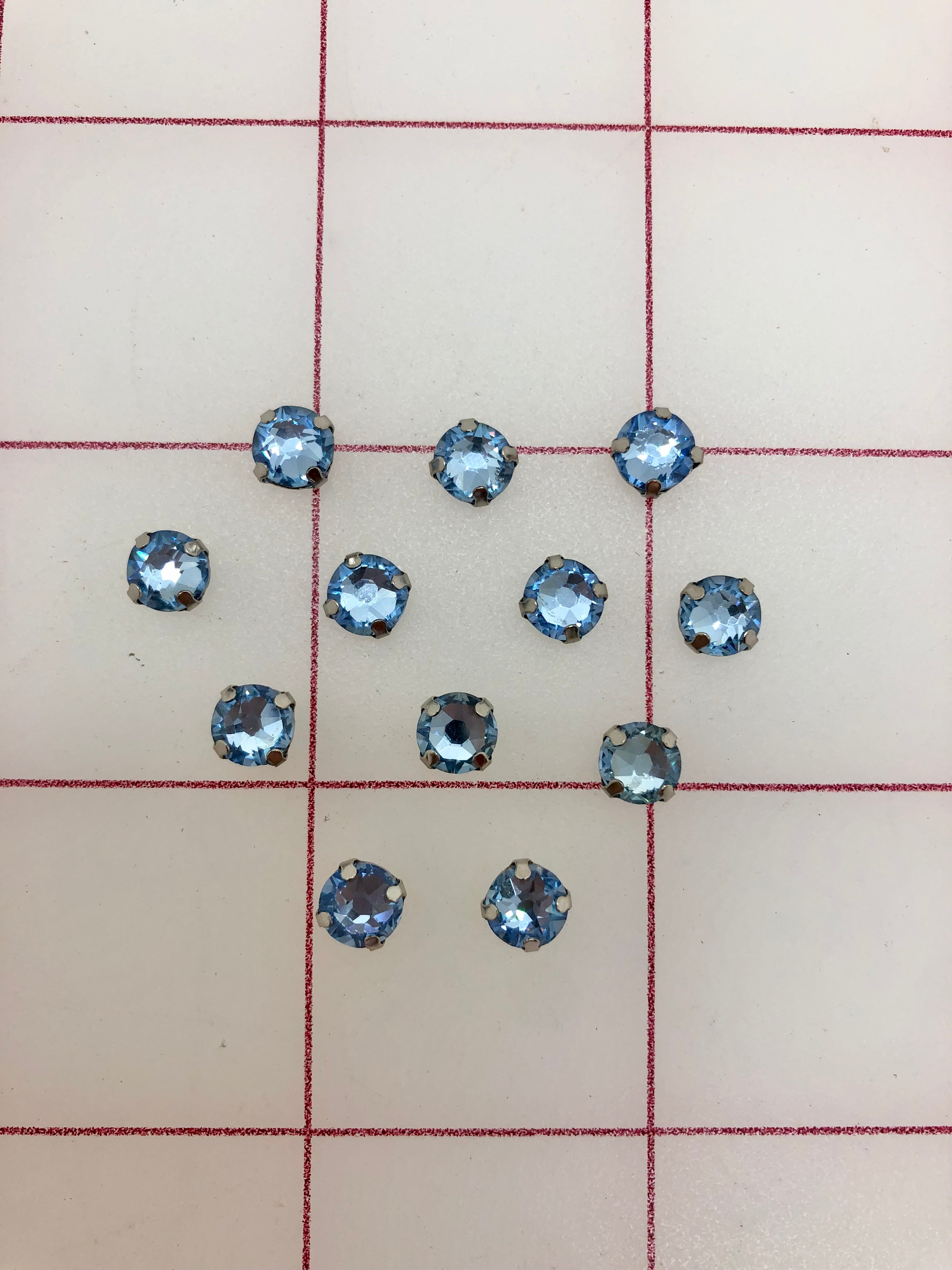 Priced per 12-pack. 30ss Rose Montees. Light Sapphire. Perfect for tiaras and other headpieces. 10% discount per half gross pack (six 12-piece packs). 20% discount per one gross pack (twelve 12-piece packs).