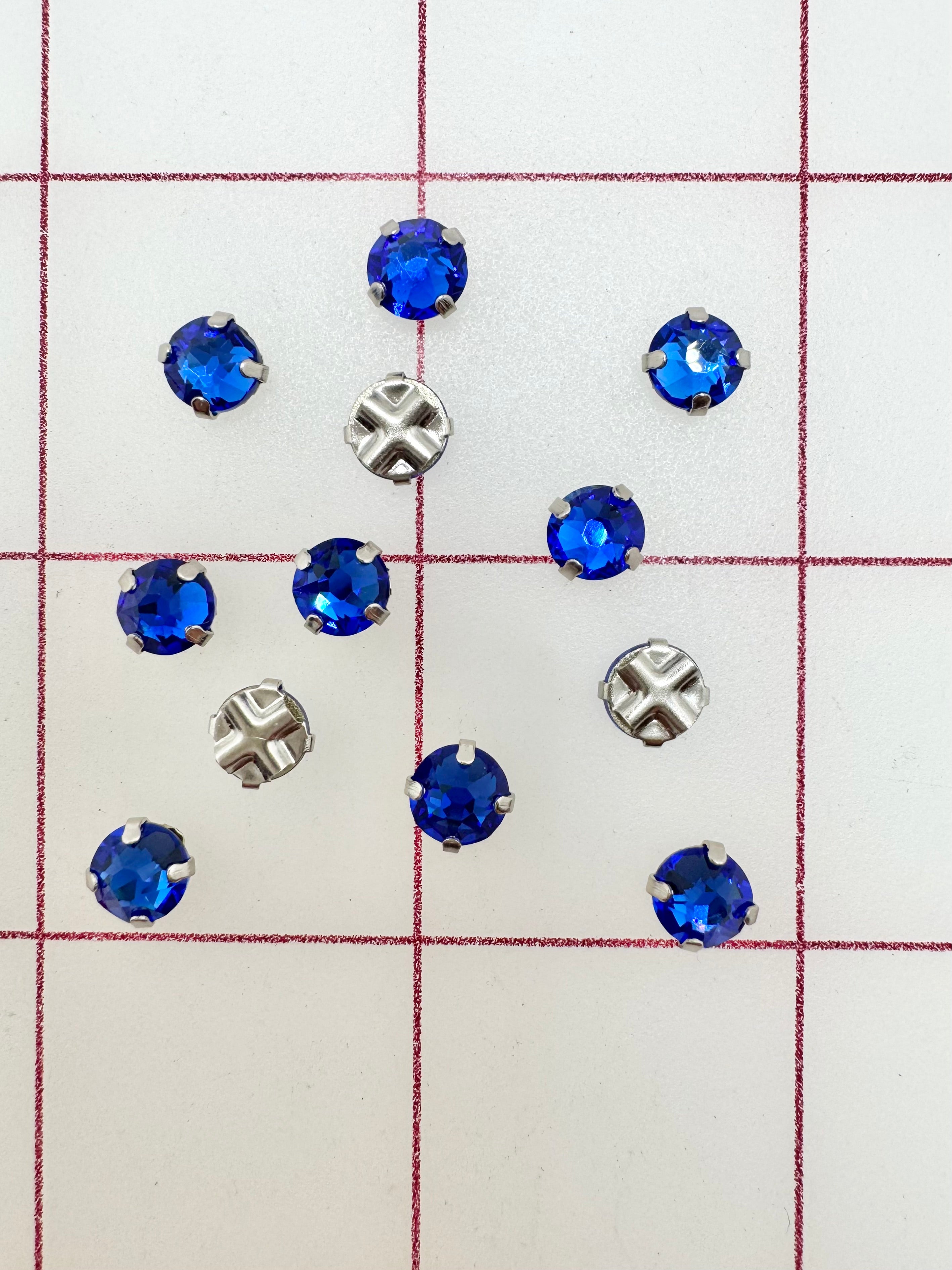 Priced per 12-pack. 30ss Rose Montees. Sapphire, a beautiful, vibrant blue. Perfect for tiaras and other headpieces.