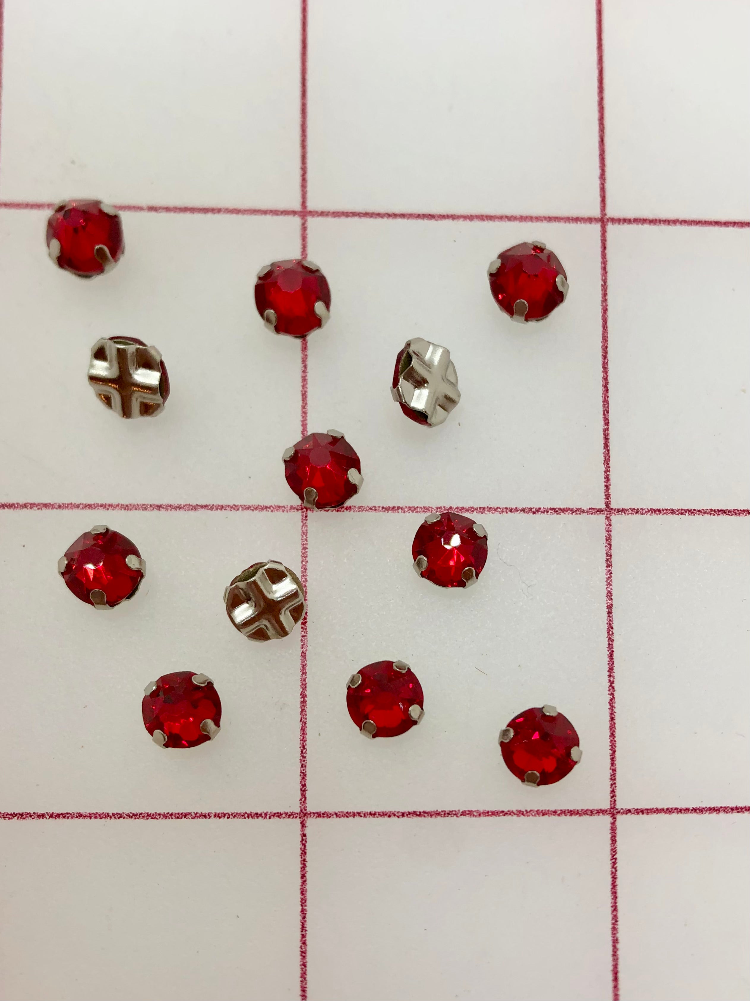 Priced per 12-pack. 30ss Rose Montees. Siam. Perfect for tiaras and other headpieces. 10% discount per half gross pack (six 12-piece packs). 20% discount per one gross pack (twelve 12-piece packs).