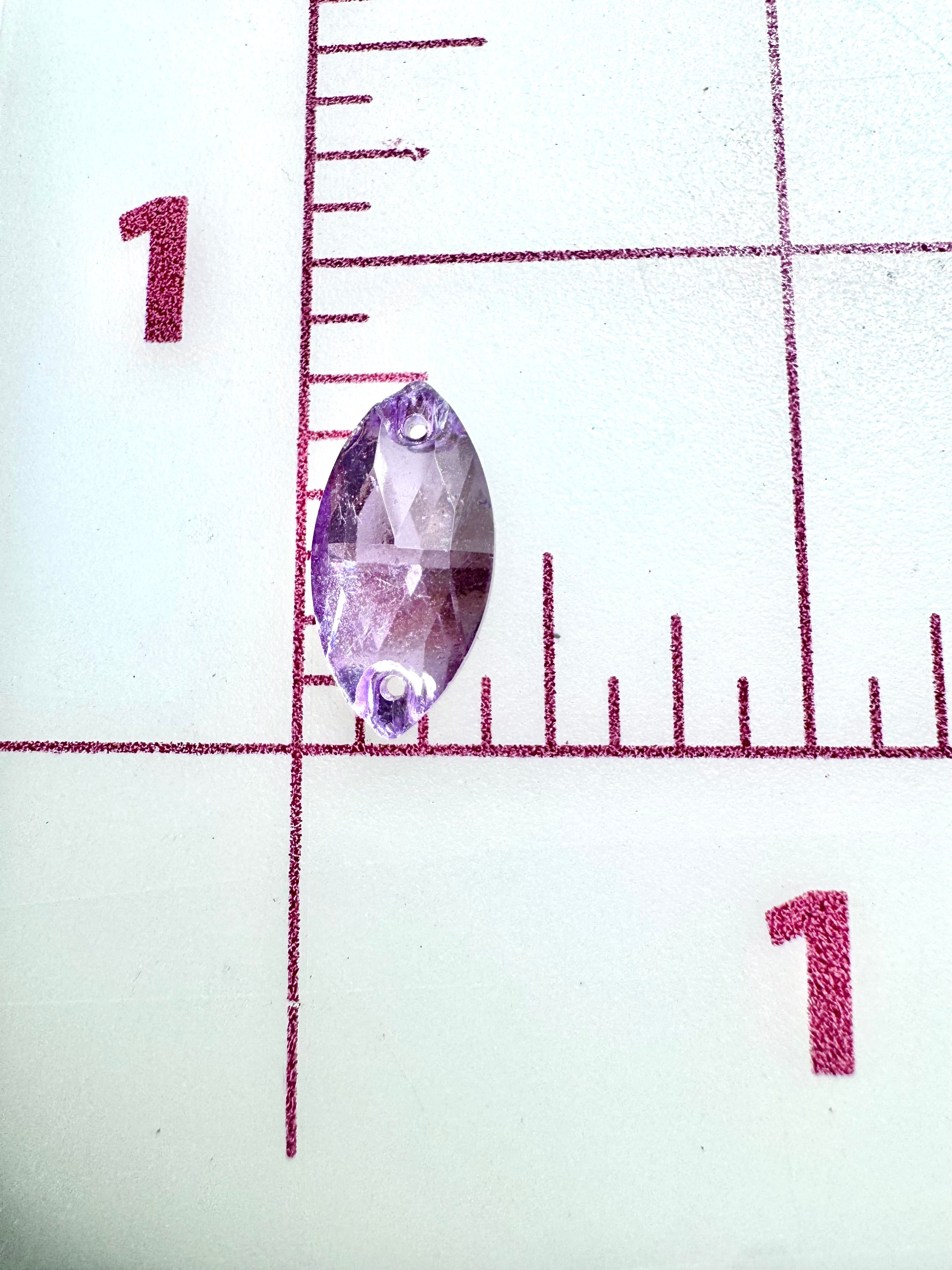 Priced per 6-pack.  9x18mm flat back Navette, or "cat's-eye"-shaped sew-on rhinestones. 20% discount per 12-pack (one dozen).  30% discount per 1/2 Gross (six dozen).
