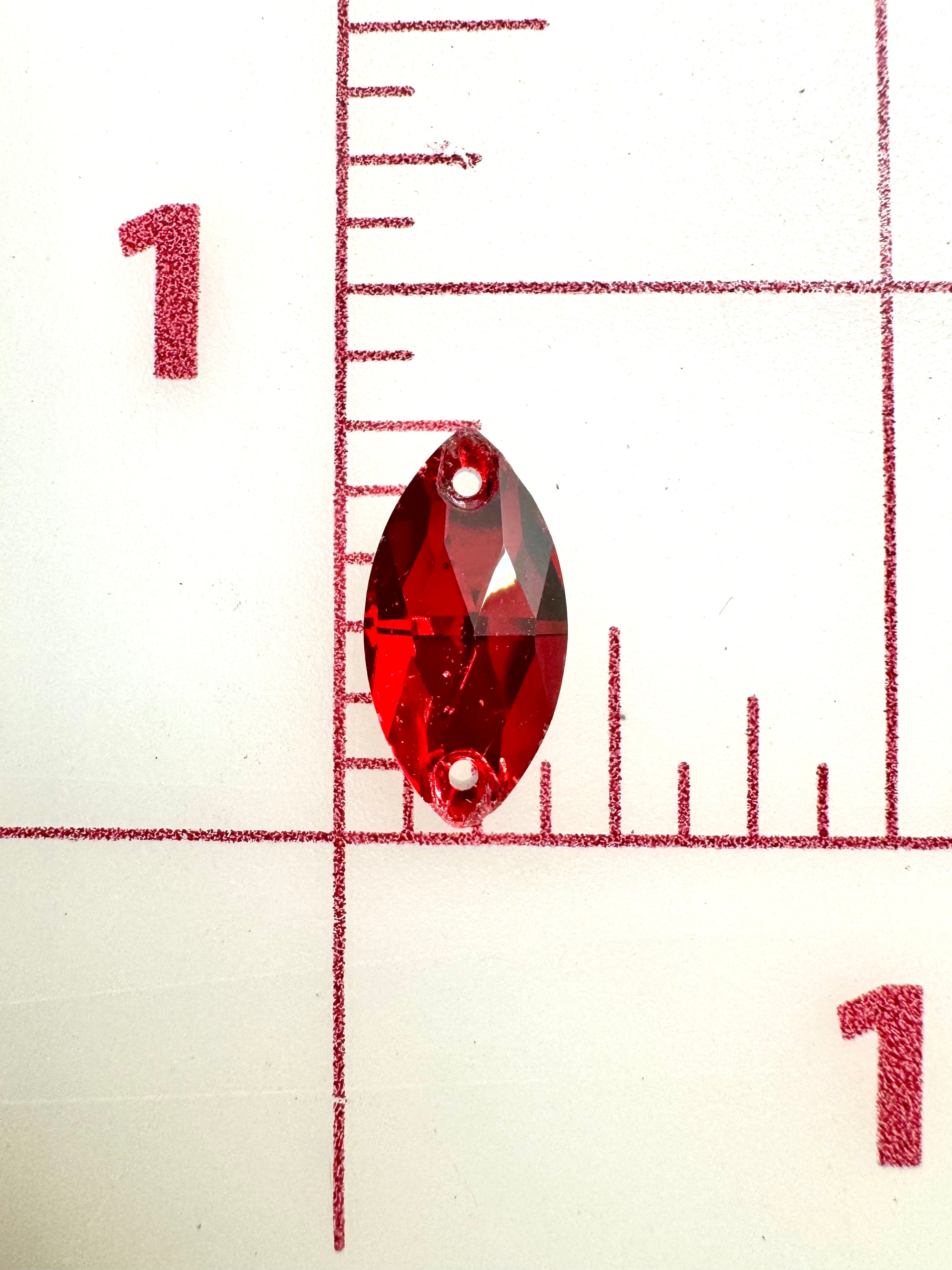 Priced per 6-pack. 9x18mm flat back Navette, or "cat's-eye"-shaped sew-on rhinestones. 20% discount per 12-pack (one dozen). 30% discount per 1/2 Gross (six dozen).