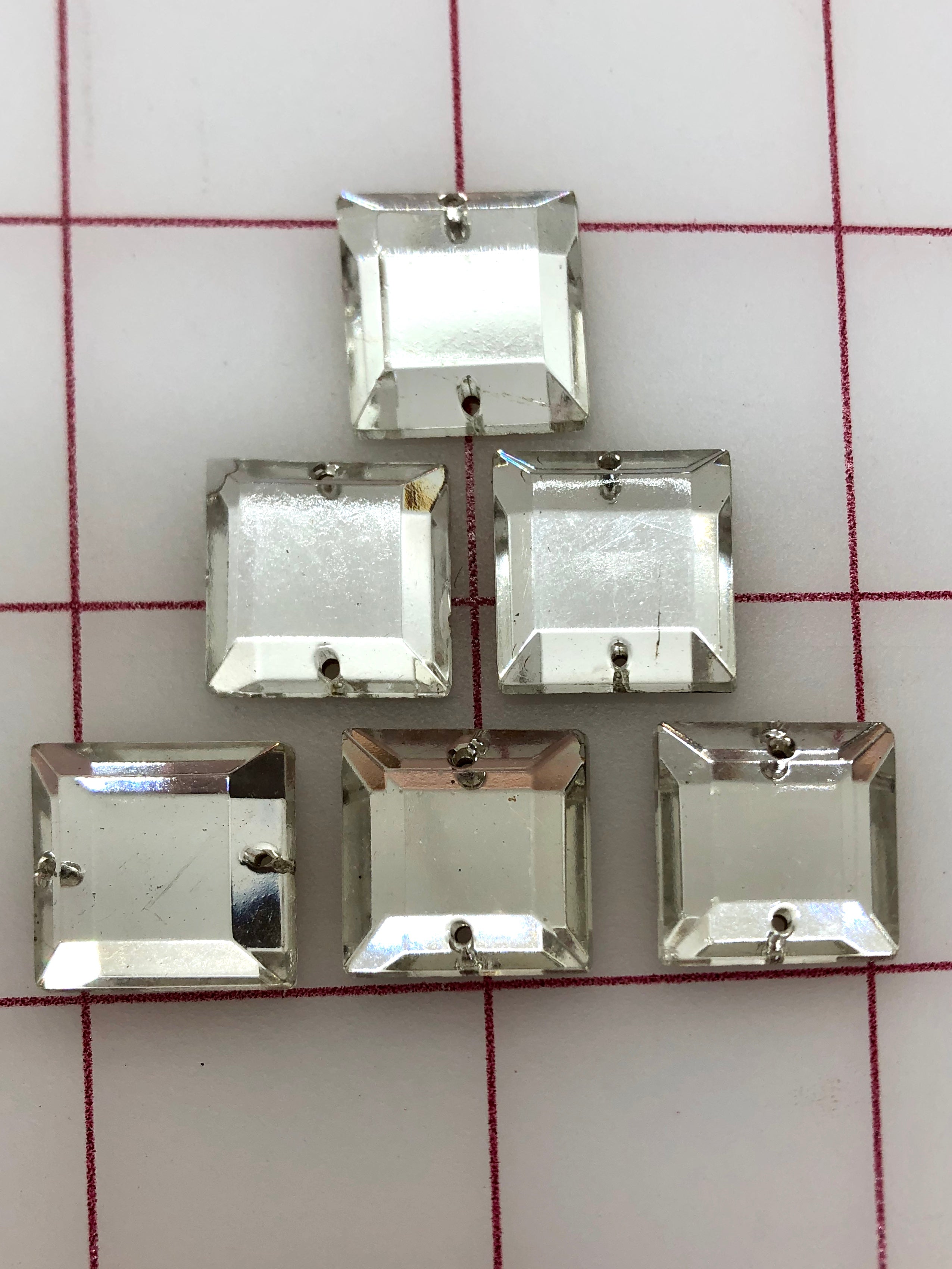 Priced per 1/2 dozen (6 pieces). Square 16X16mm Crystal Sew-on Close-Out. Perfect for use on tutu plates, bodices, headpieces, and many other costumes.