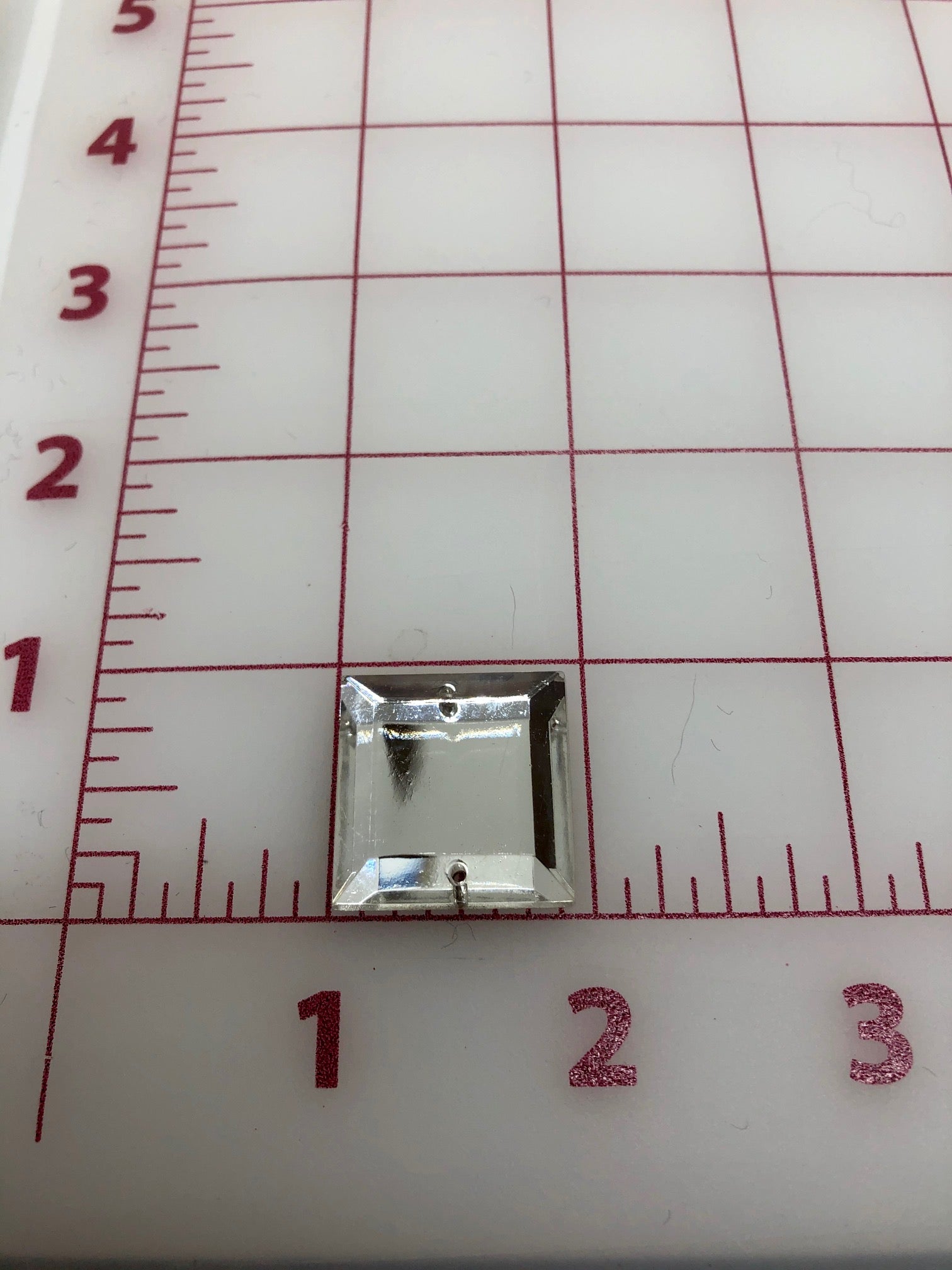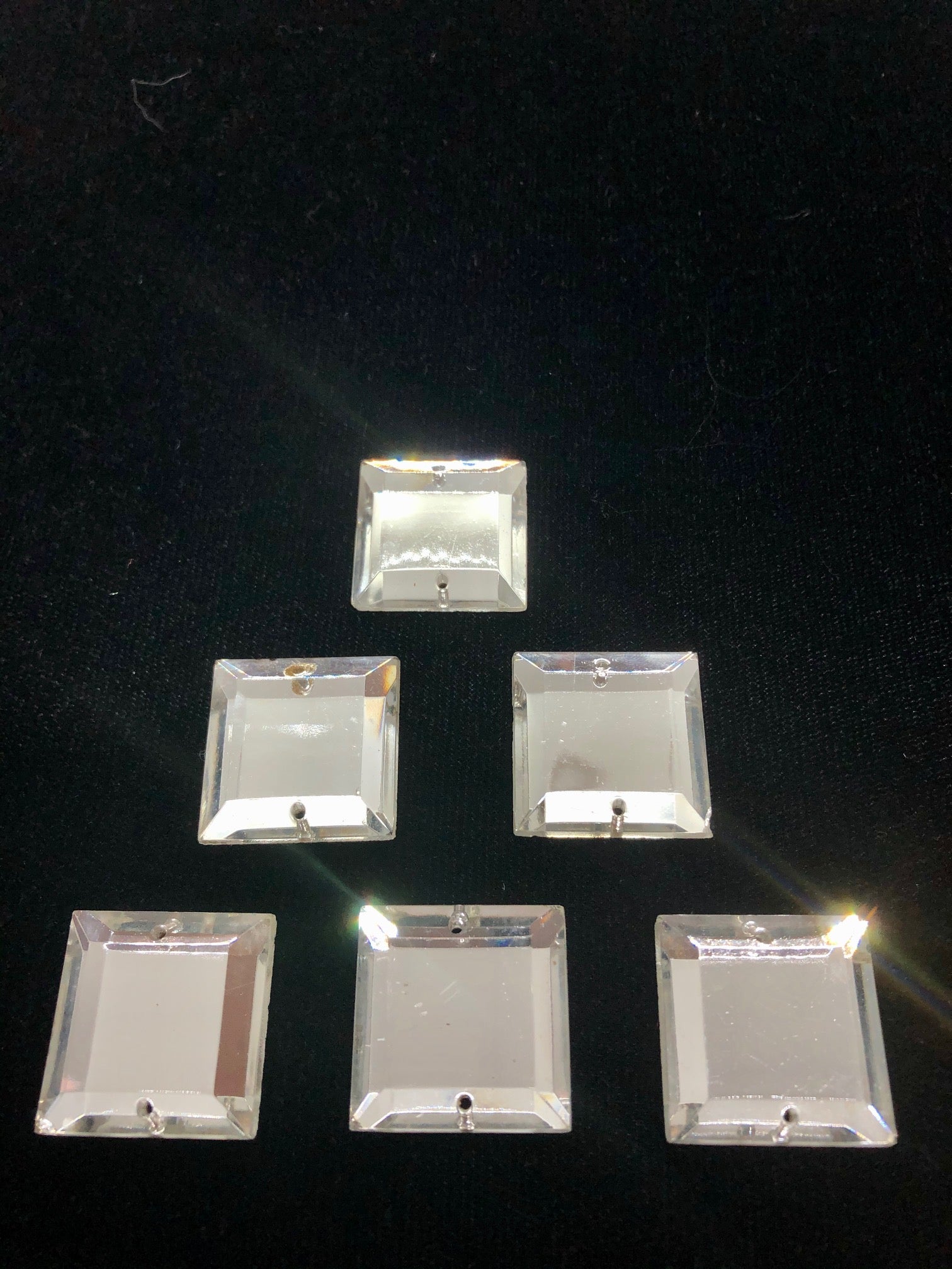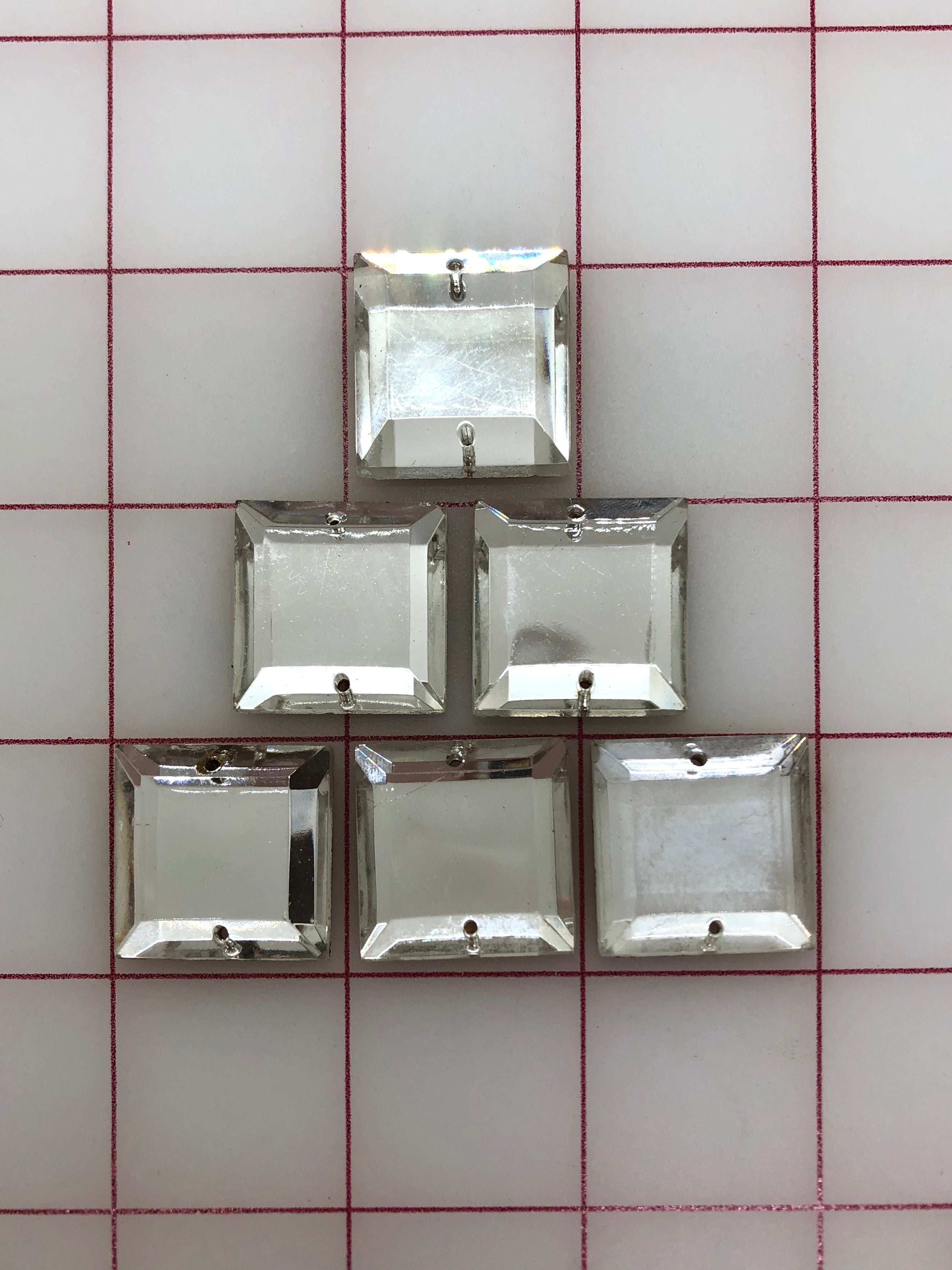 Priced per 1/2 dozen (6 pieces). Square 23x23mm Crystal Sew-on Close-Out. Perfect for use on tutu plates, bodices, headpieces, and many other costumes.