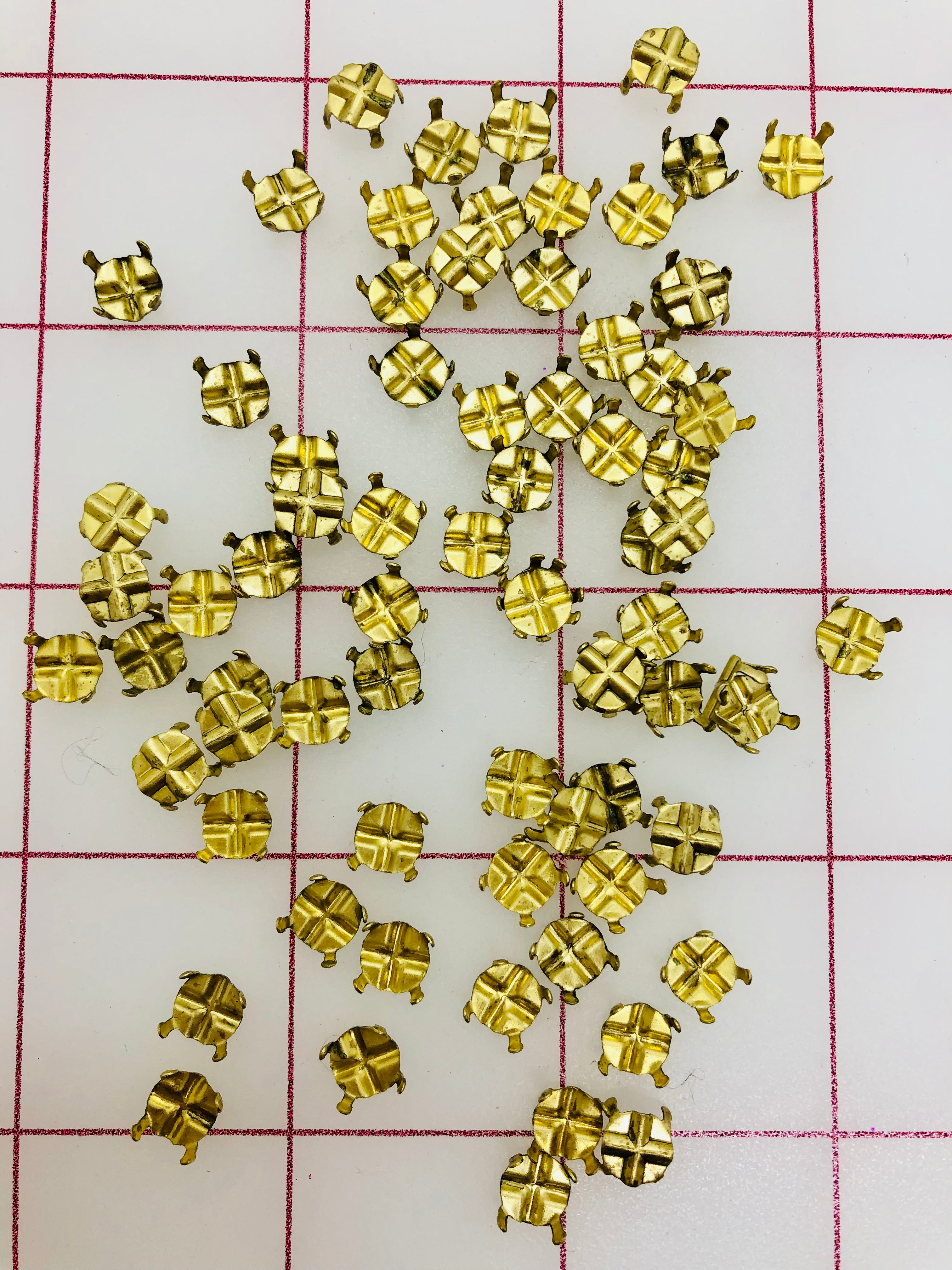 Priced per half gross (72 pieces). Un-plated brass, gold-color. Settings for 30ss Flat-Back Rhinestones.