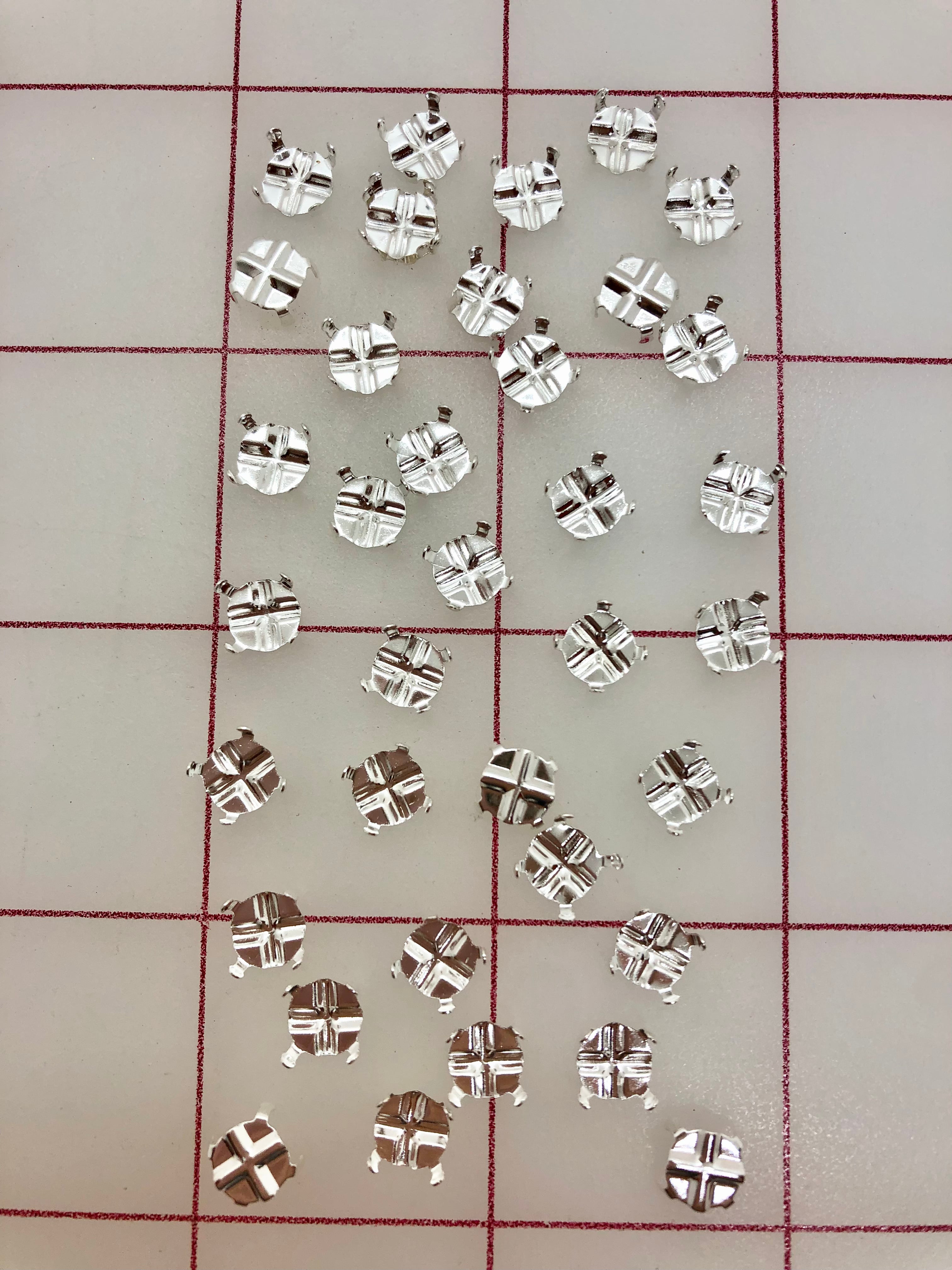 Priced per 36-piece pack. Silver-plated brass, silver-color. Settings for 34ss Flat-Back Rhinestones.