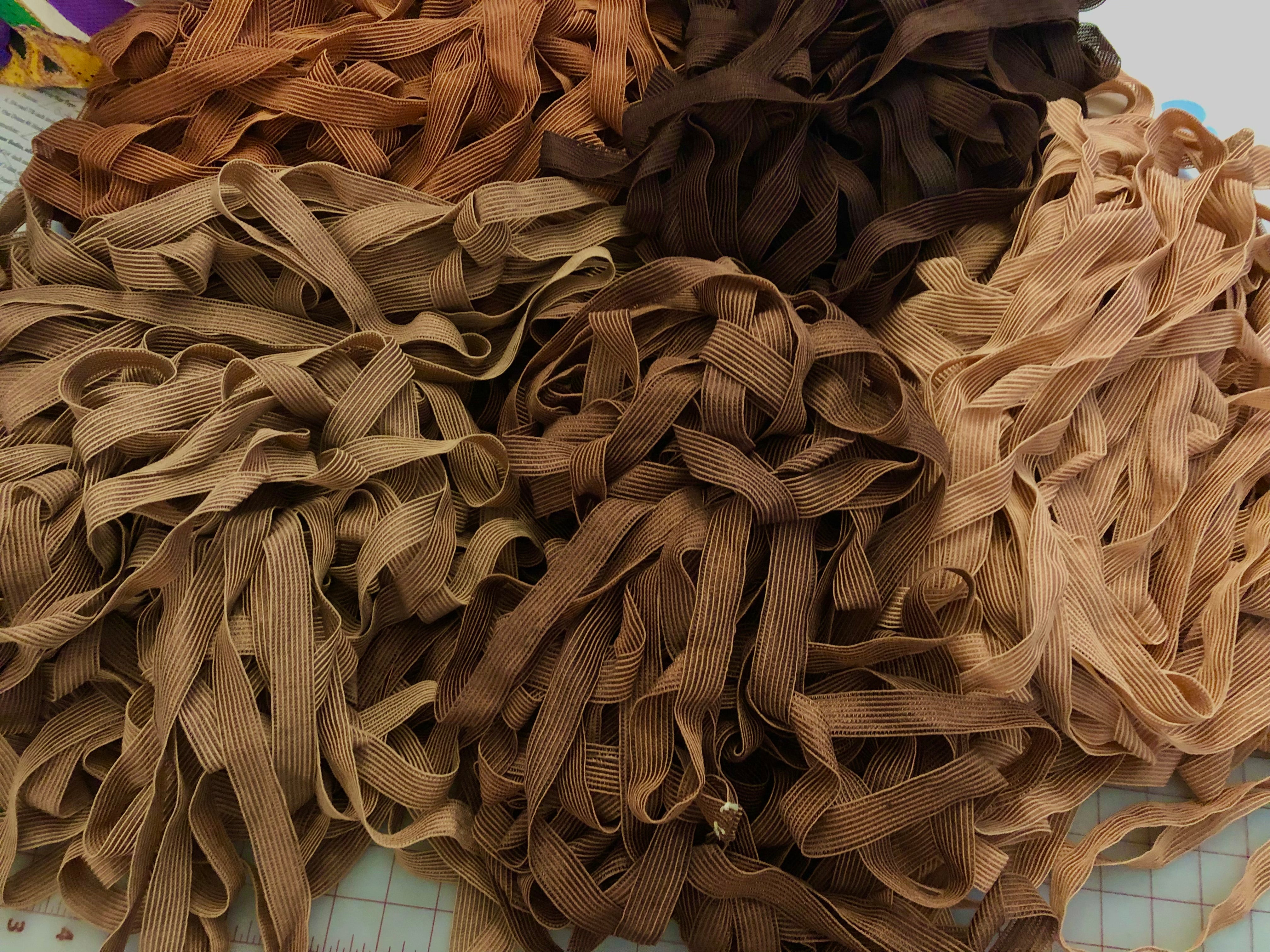 Priced per card. Skintone invisible mesh elastic sample card. Perfect for shoulder straps on bodices and other costumes that need to match various skintones. Prices on back of each card.
