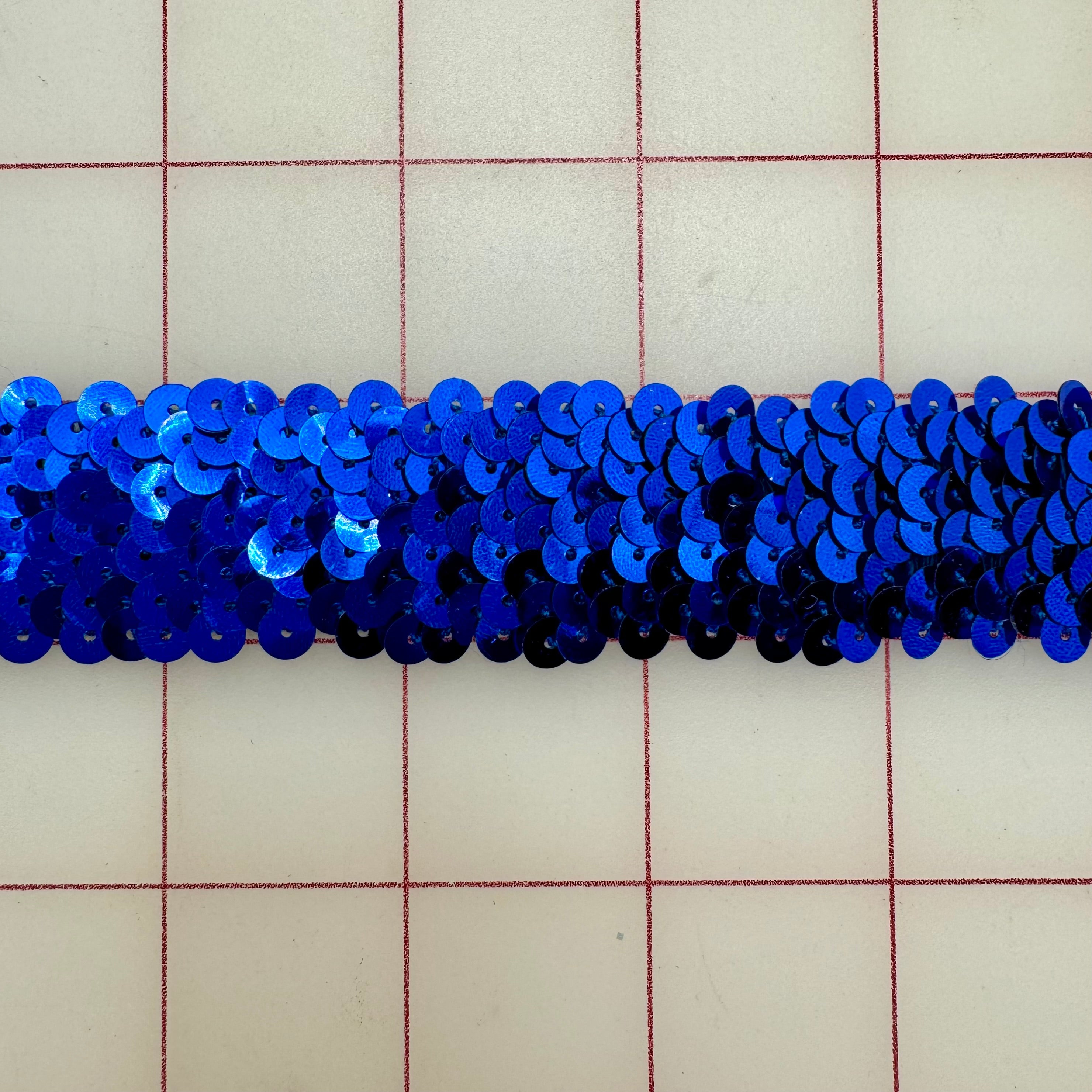 Priced per yard. Royal Blue stretch sequin trim. 1-inch wide.