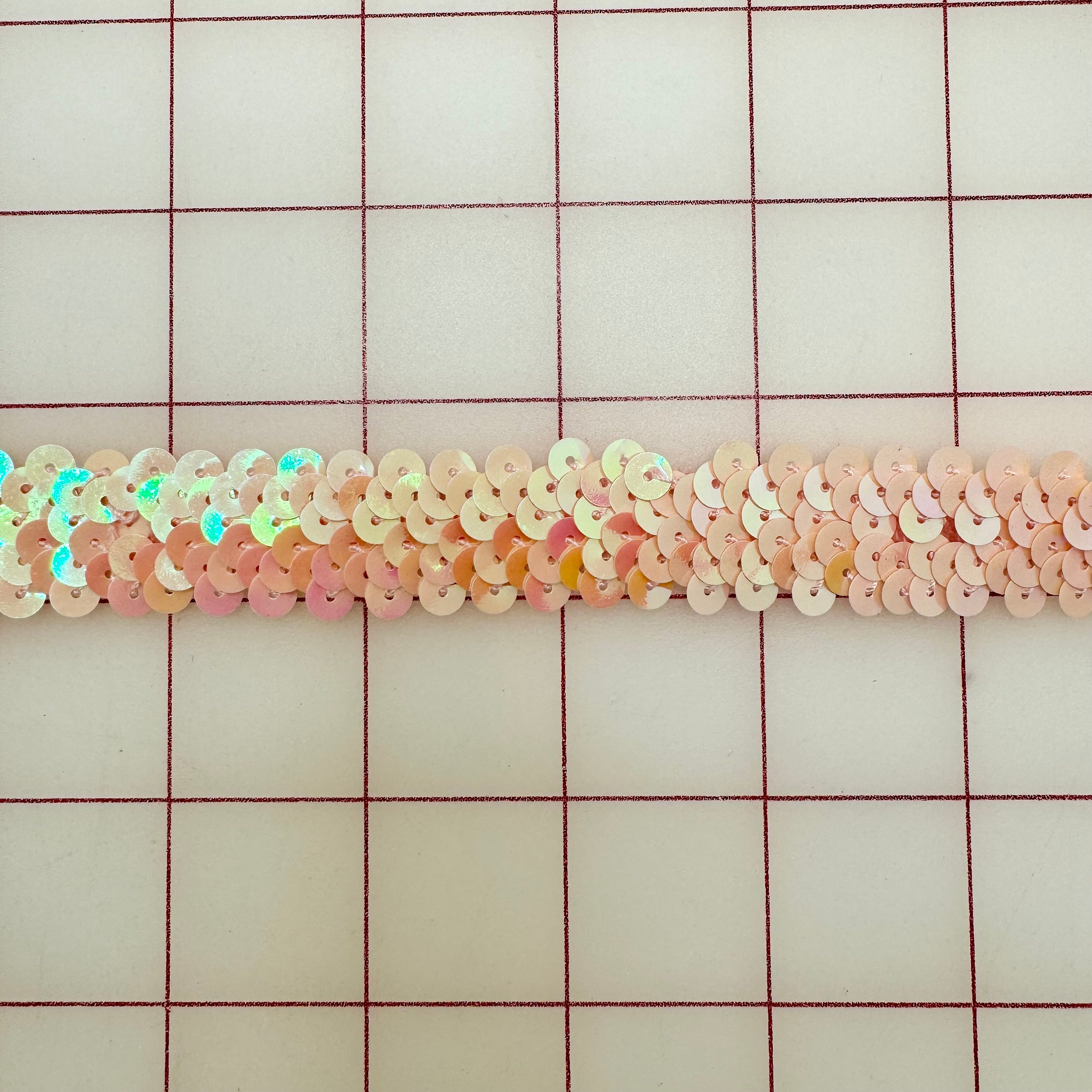 Priced per yard. Peachy-Pink stretch sequin trim. 3/4-inch wide.