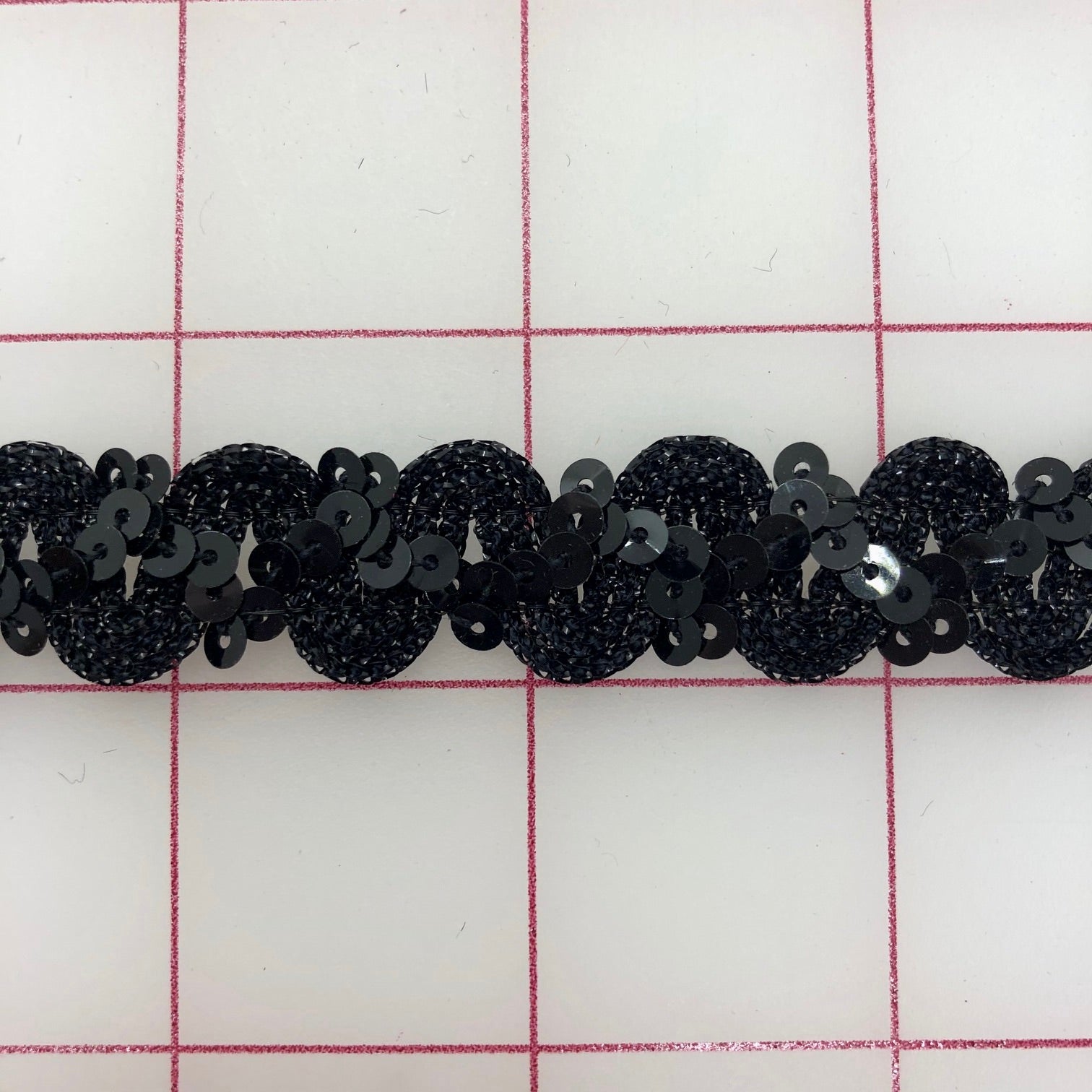 Priced per yard. Black sequined trim. 1.2-inch wide. Perfect for embellishing classical tutus, men's tunics and other ballet costumes.