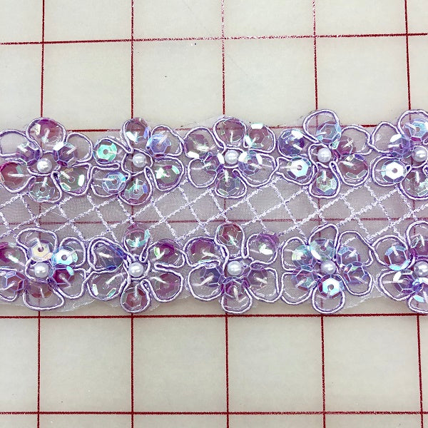 Priced per yard. Lavender sequined trim. 2-inches wide. Can be used "as-is" or cut into separate flowers or thinner yardage Perfect for embellishing classical tutus and other ballet costumes.