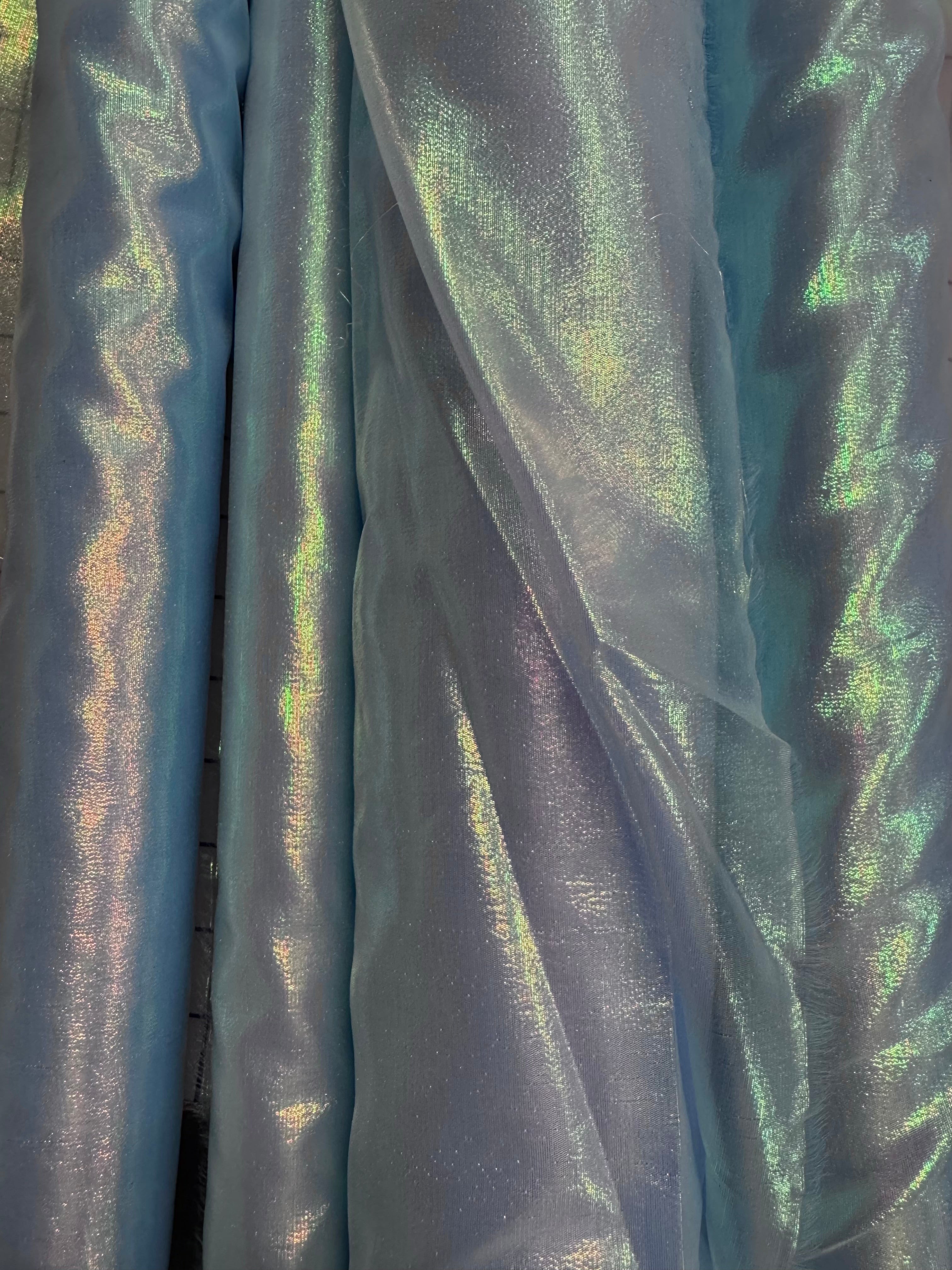 Priced per yard. Sheer Opalescence. Blue - a cool, sky blue shade. A beautifully sheer fabric.
