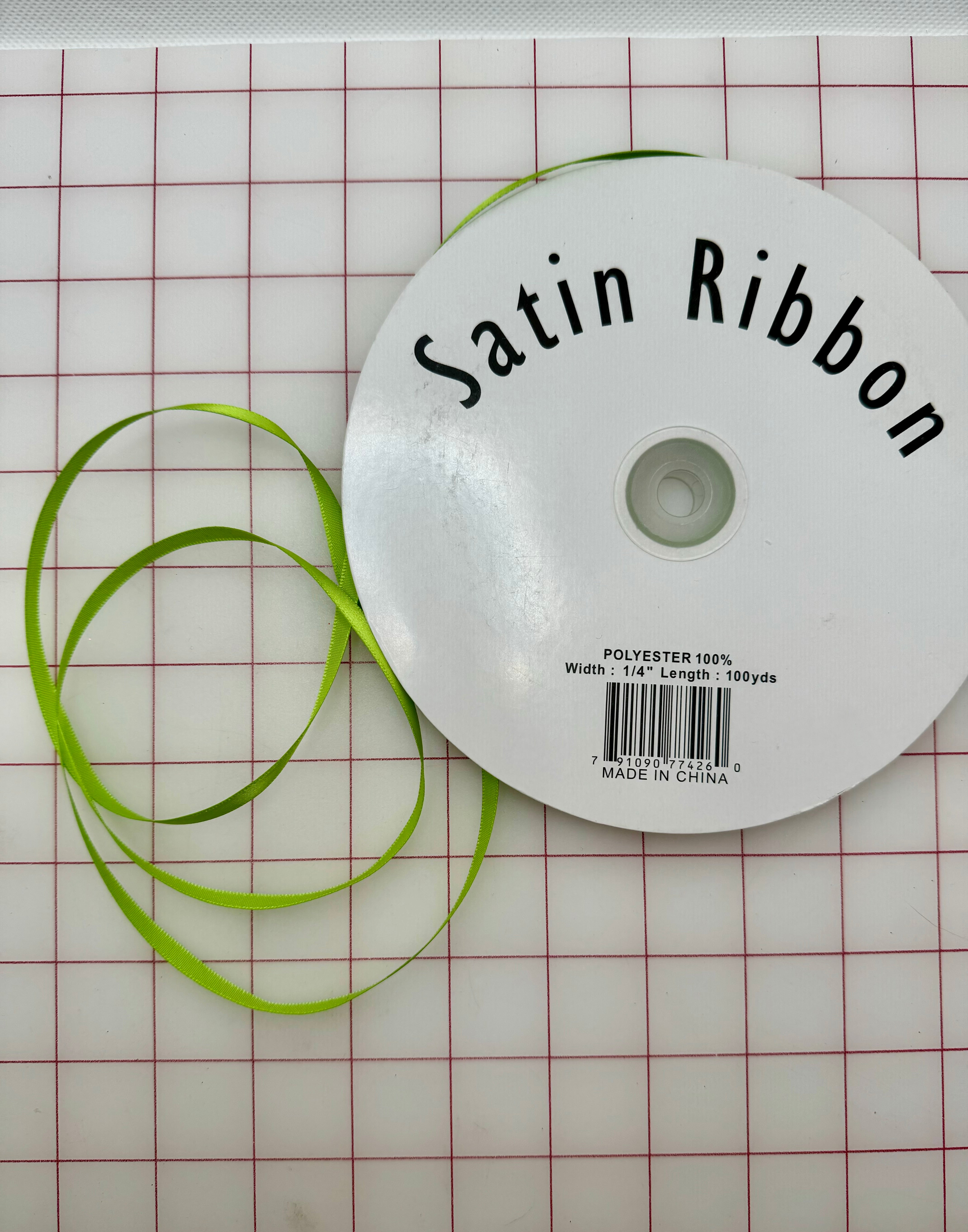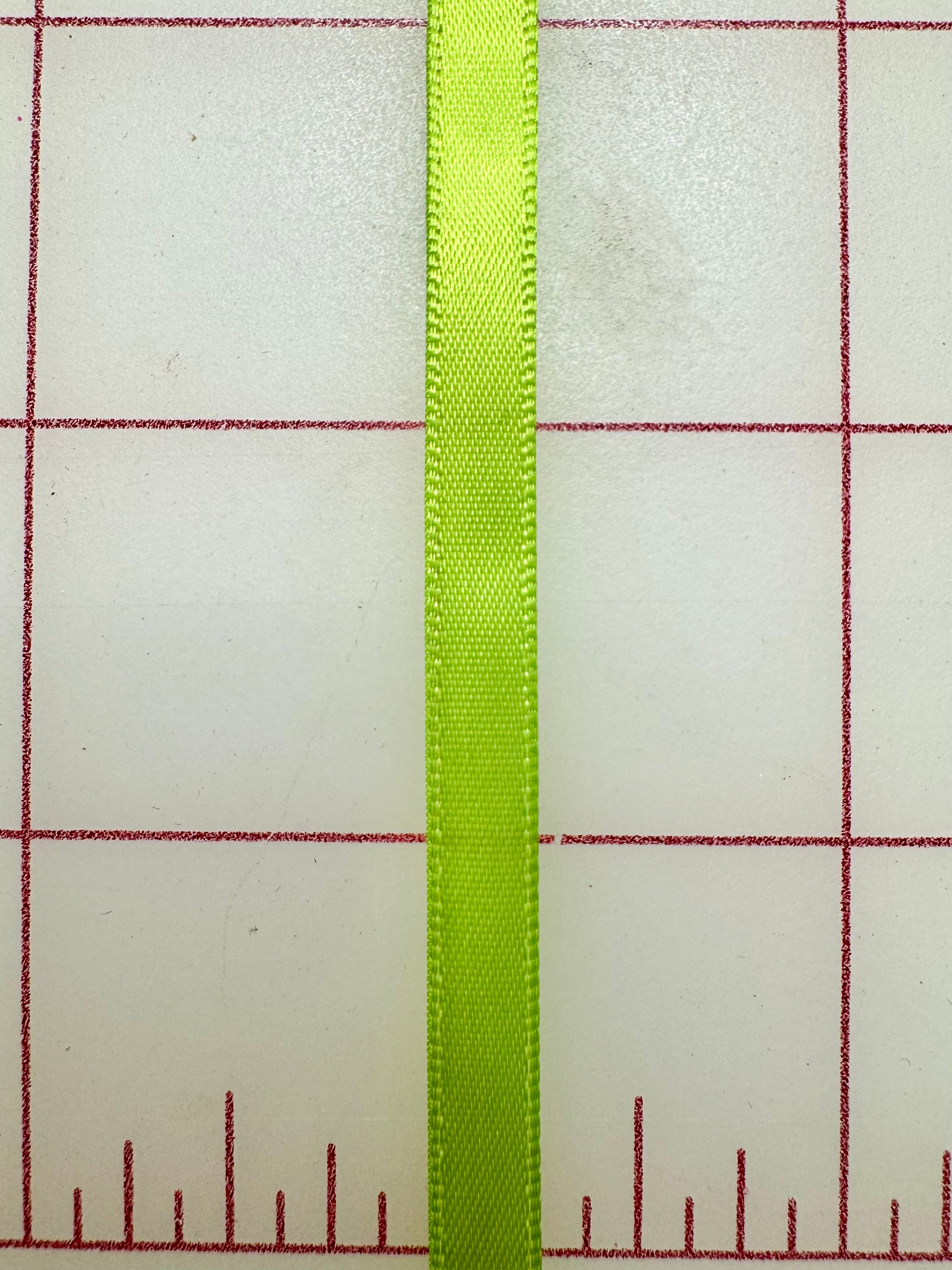 Priced per yard. Spring Green, 1/4-inch single-face satin ribbon.