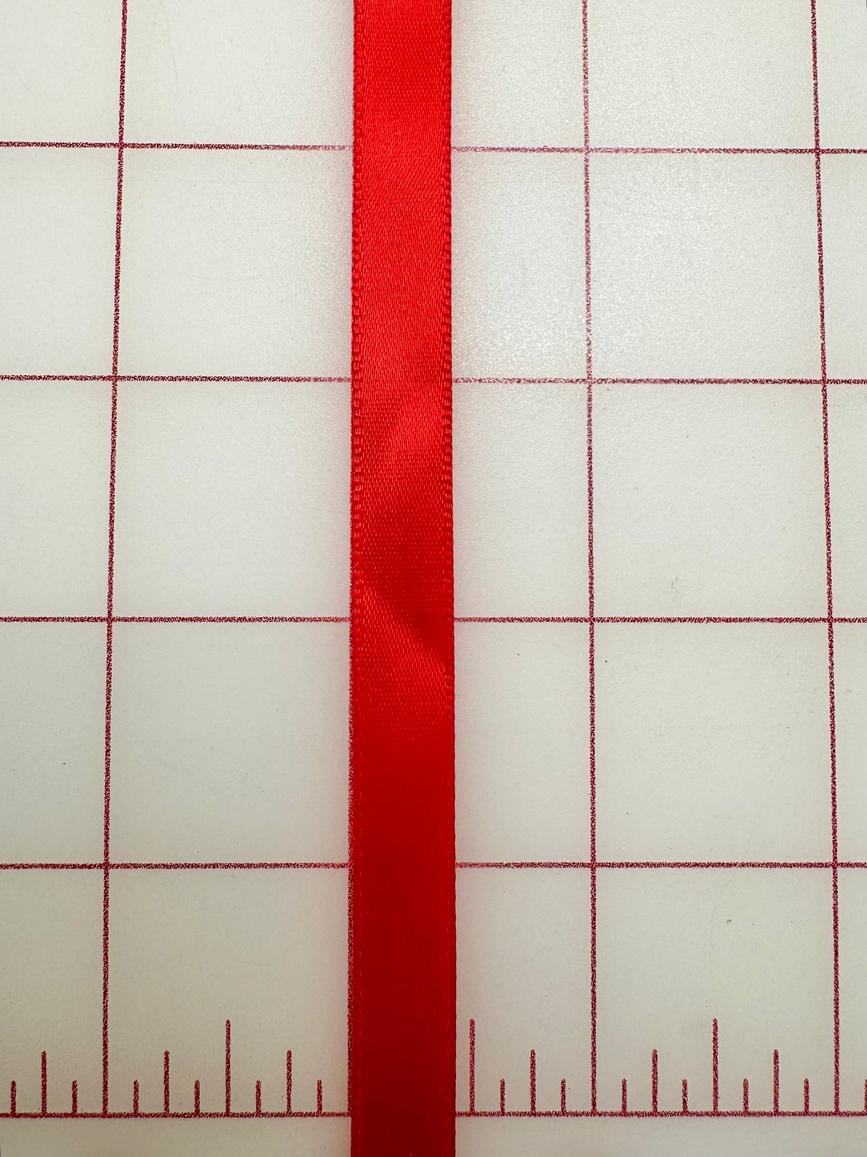 Priced per yard. China Red, 3/8-inch single-face satin ribbon.