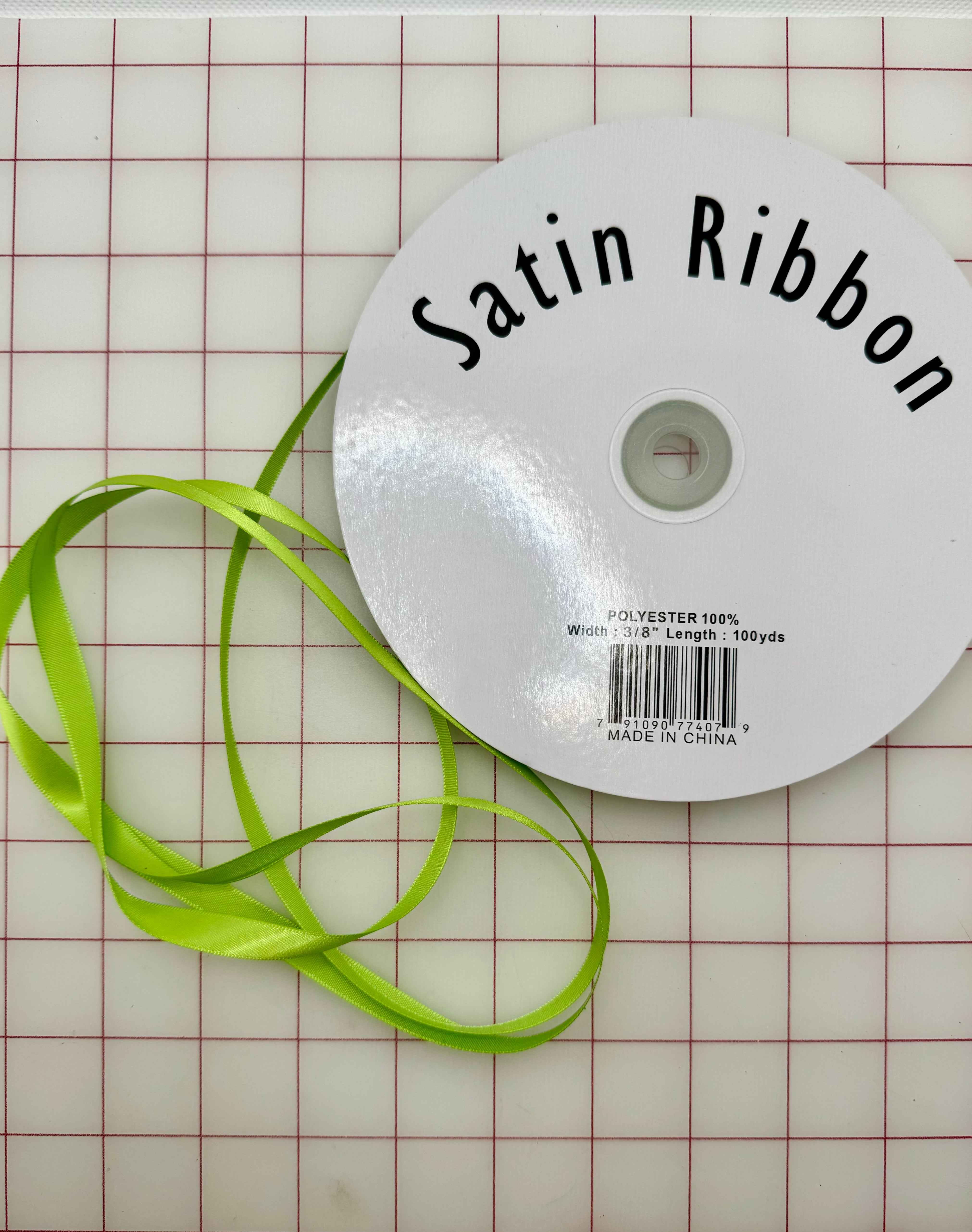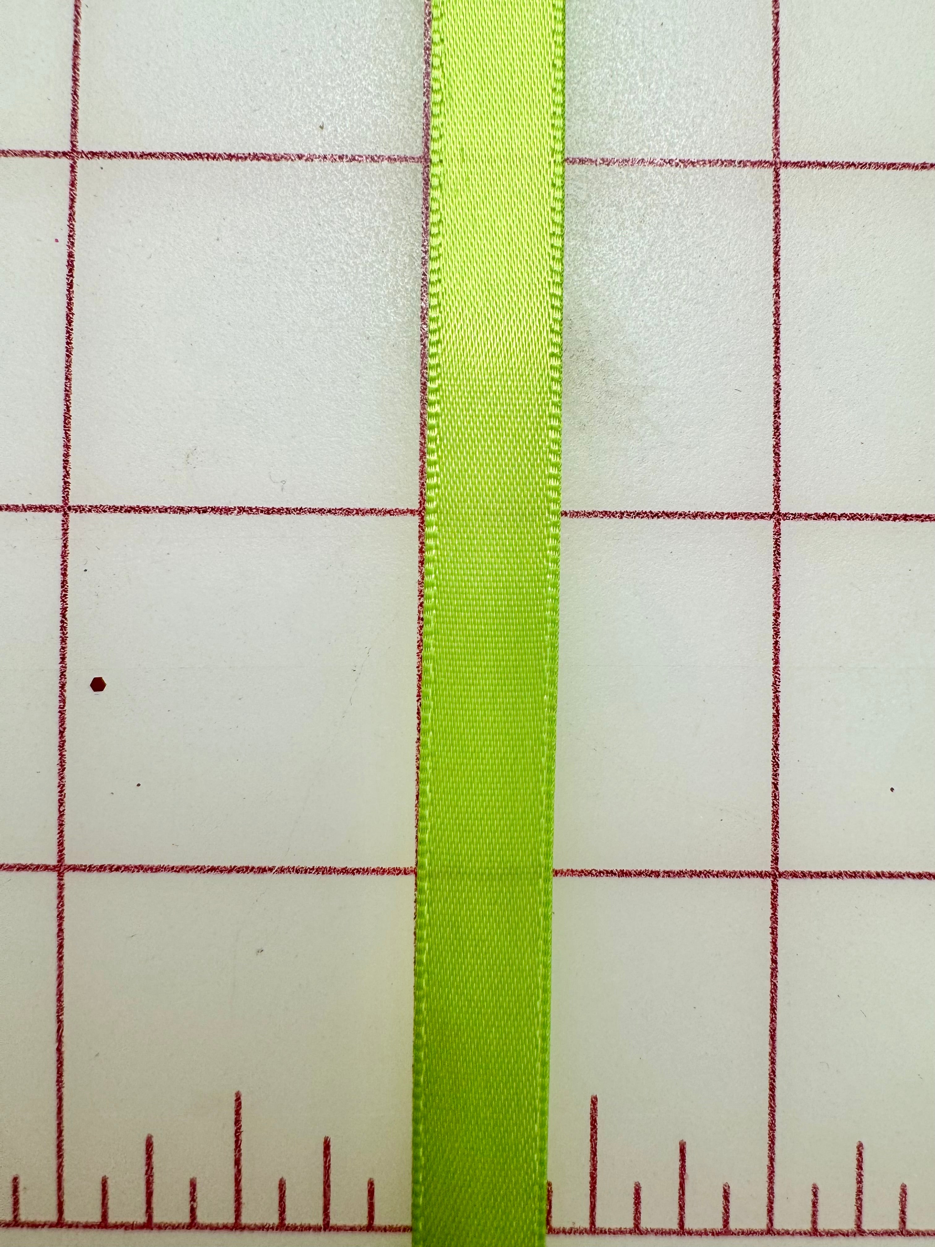 Priced per yard. Spring Green, 3/8-inch single-face satin ribbon.