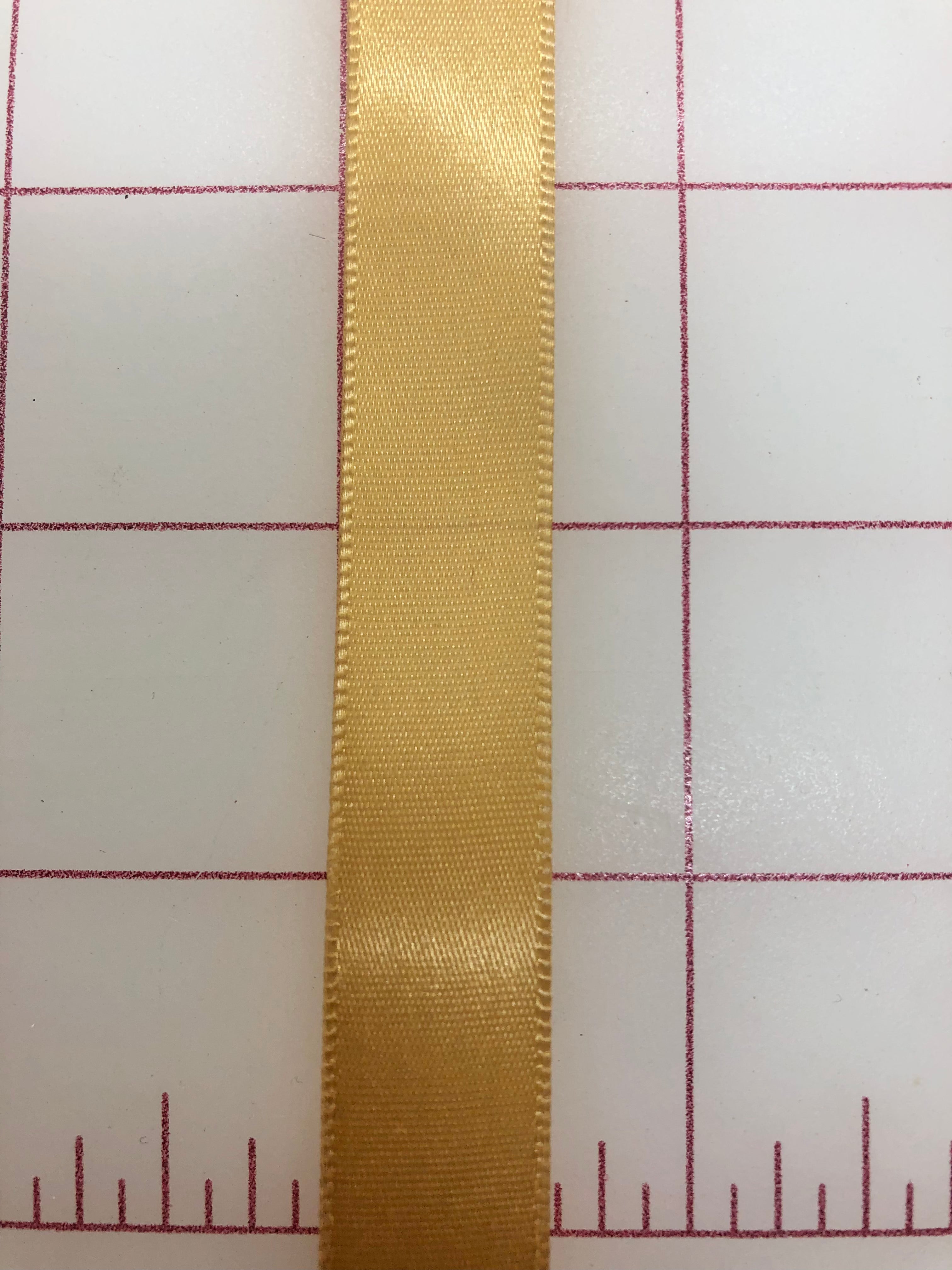 Priced per yard. Old Gold. 5/8-inch single-face satin ribbon. Quantity discount of 20% on 100-yard rolls.