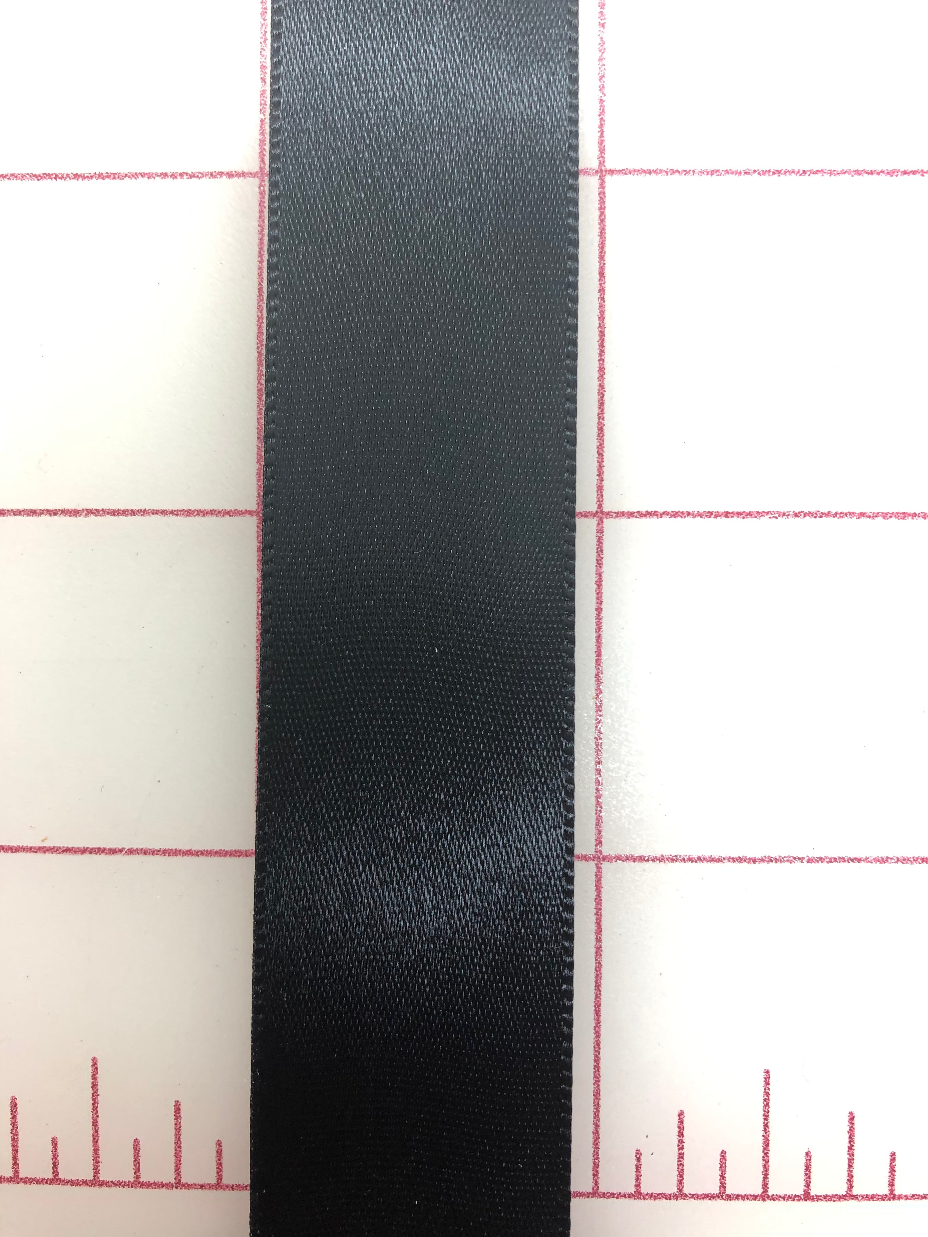 Priced per yard. Black. 7/8-inch single-face satin ribbon. Quantity discount of 20% on 100-yard rolls.