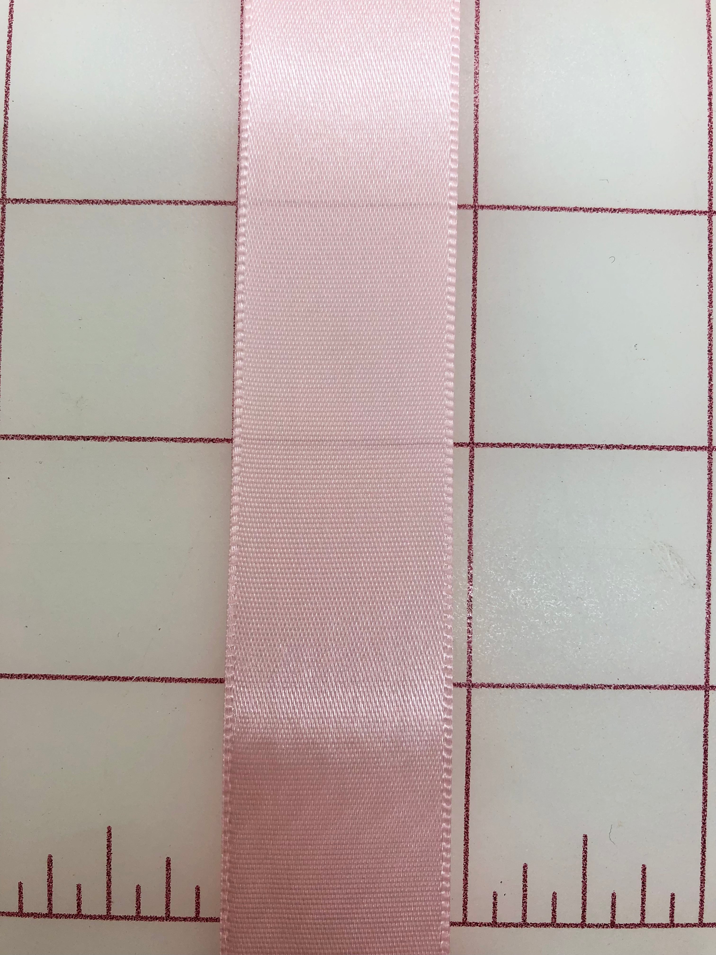 Priced per yard. Light Pink. 7/8-inch single-face satin ribbon. Quantity discount of 20% on 100-yard rolls.