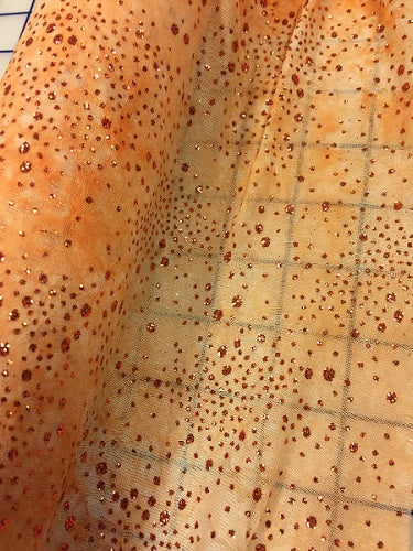 Priced per yard. Peach Sparkle Stretch, 60-inches wide. Great for dance skirts, harem pants, etc.
