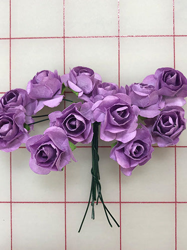 Priced per 12-flower bunch. Purple mini roses on a green wire.