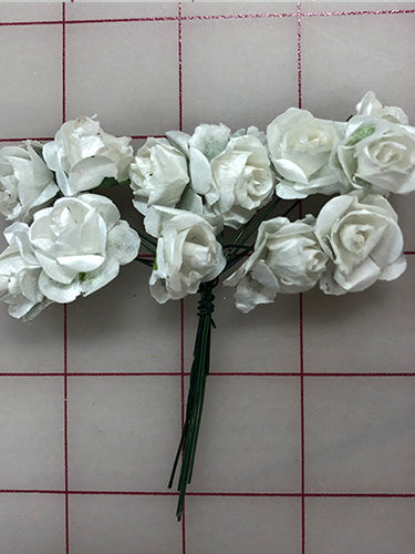 Priced per 12-flower bunch. Winter white / cream mini roses on a green wire.